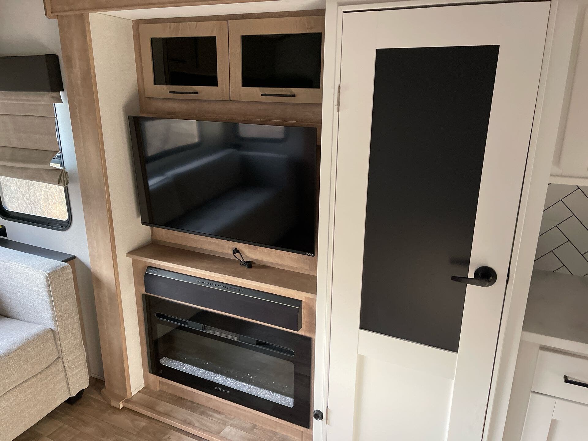 - Furnace, Refrigerator, Water Heater, Fireplace built into the RV for comfort and convenience