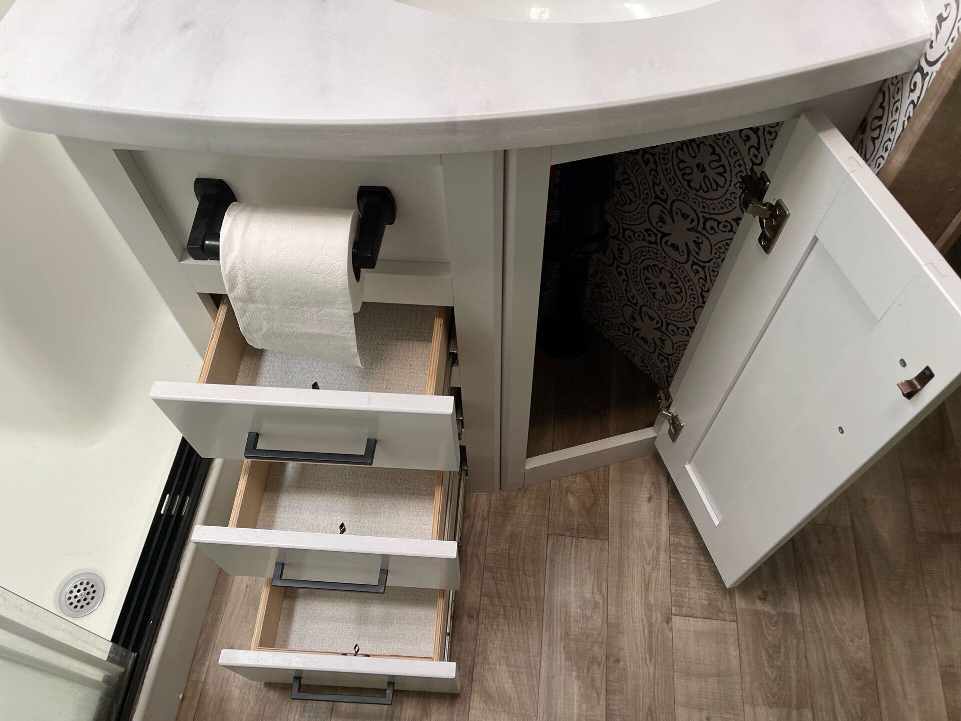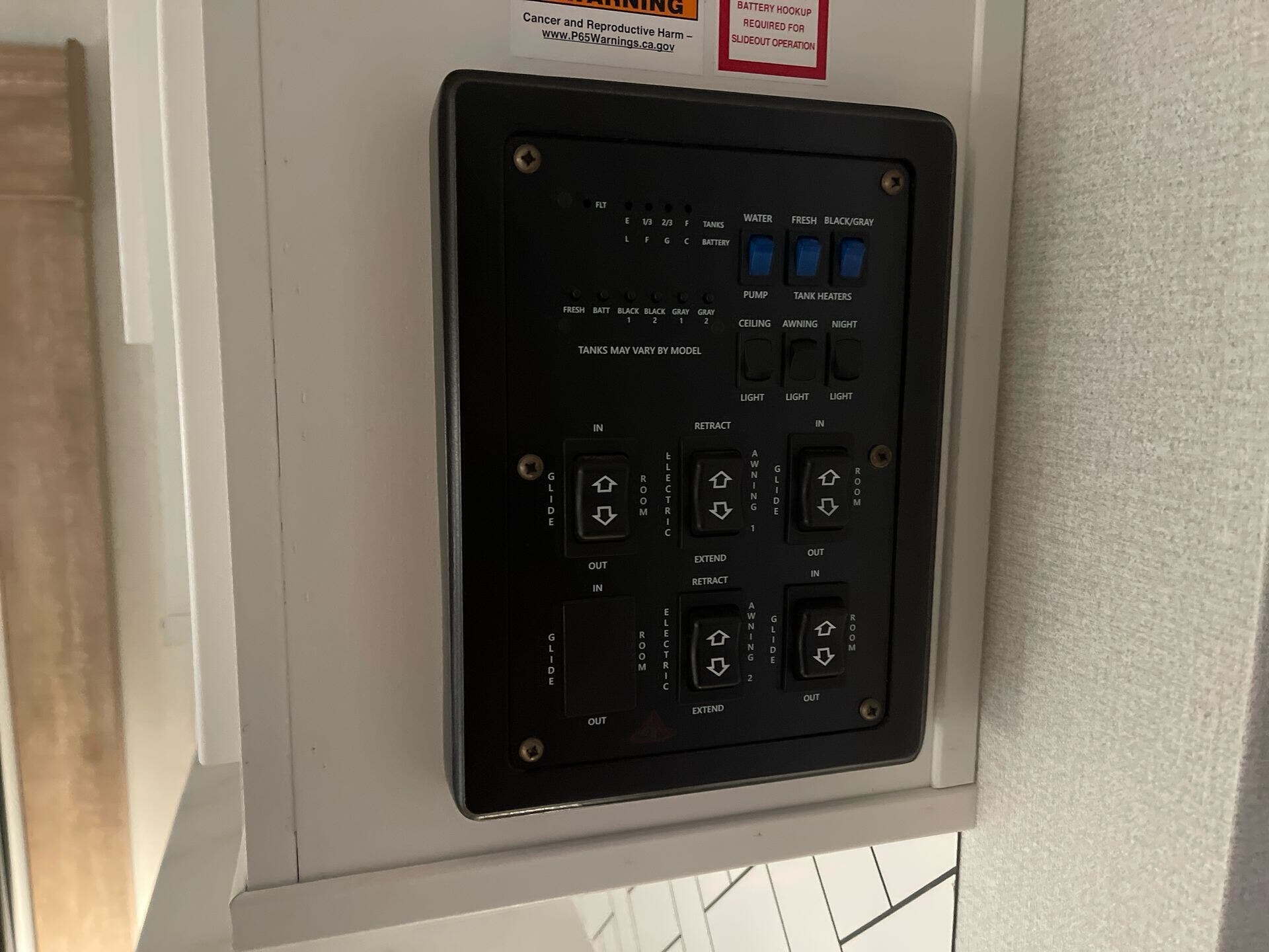 - Fresh water capacity: 54 gallons; Grey water: 60 gallons; Black water: 30 gallons