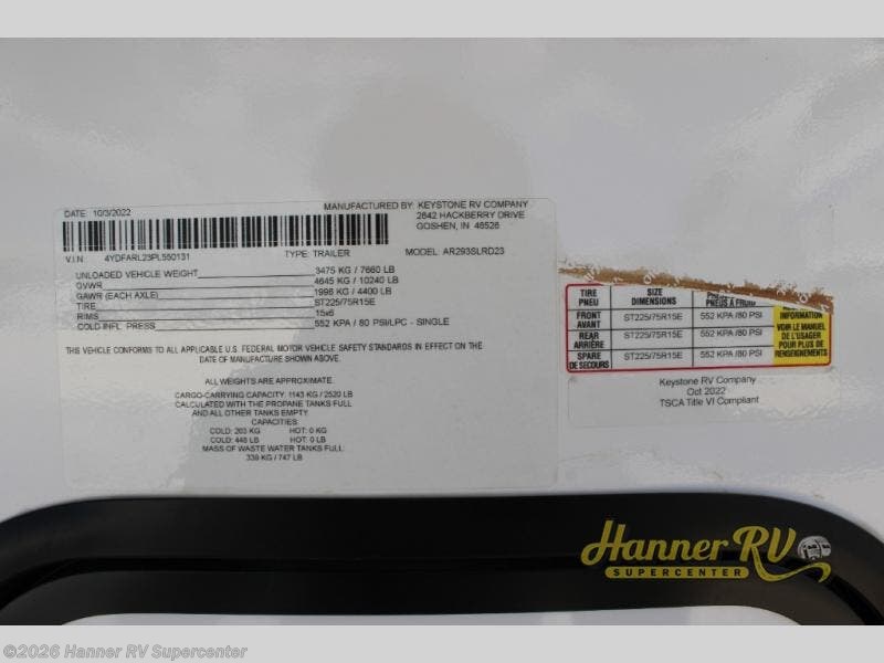 Request More Info on this 2023 Keystone Arcadia Super Lite 293SLRD Offered for sale by Hanner RV Supercenter