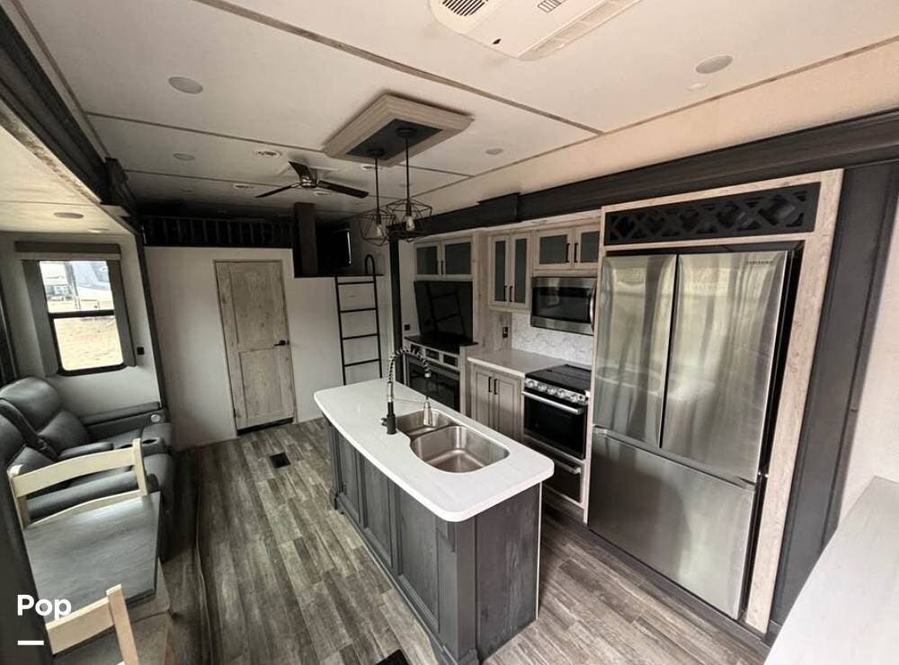 Looking for a lightly used Fifth Wheel that has two bedrooms, two full bathrooms, a loft for sleeping up to six, and room to spread out and enjoy your time on the road? Look no further; this 2023 Avalanche 390DS by Keystone is loaded with features, including a full-size galley and a large entertainment center with a fireplace that can be used for heating or simply for ambiance.