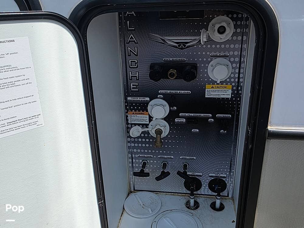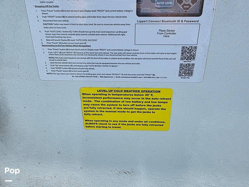 Outside, there are two power patio awnings (11 feet and 16 feet) that allow you to take the fun outdoors when at the campsite. The unit features large storage compartments with access from both sides. All of the RV systems are clearly marked and easily accessible around the exterior of the RV.