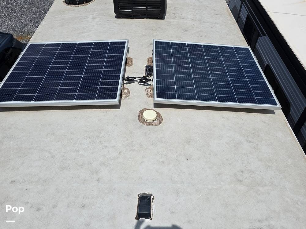 The unit was upgraded to a Solarflex 400I Solar Package with roof solar panels, featuring a solar converter to keep the house batteries charged and ready for use.