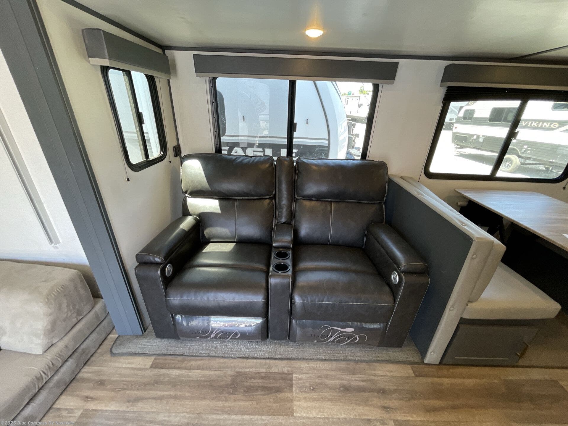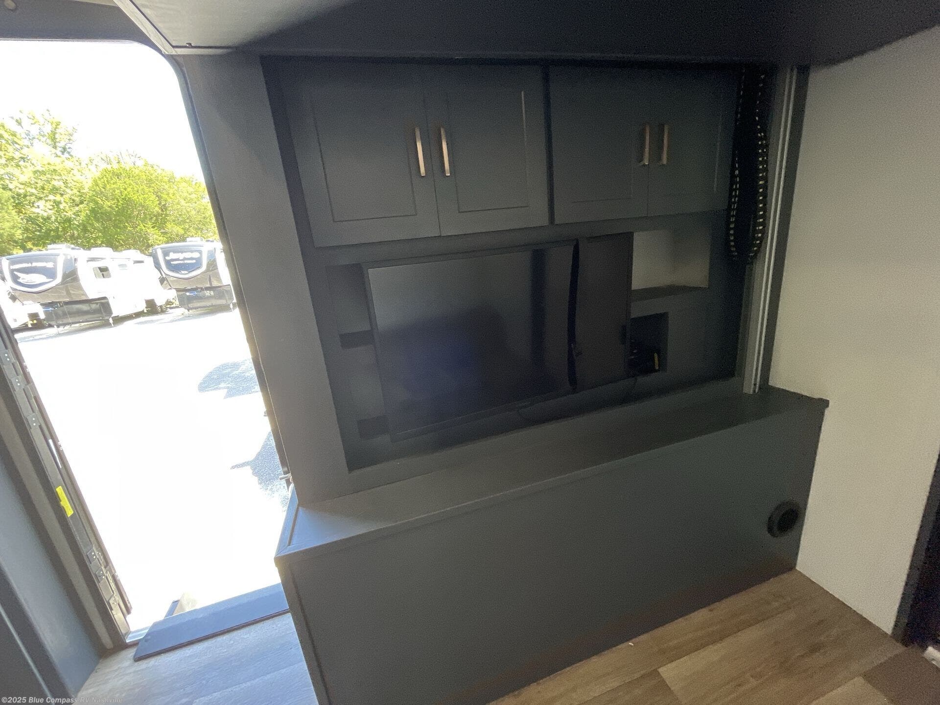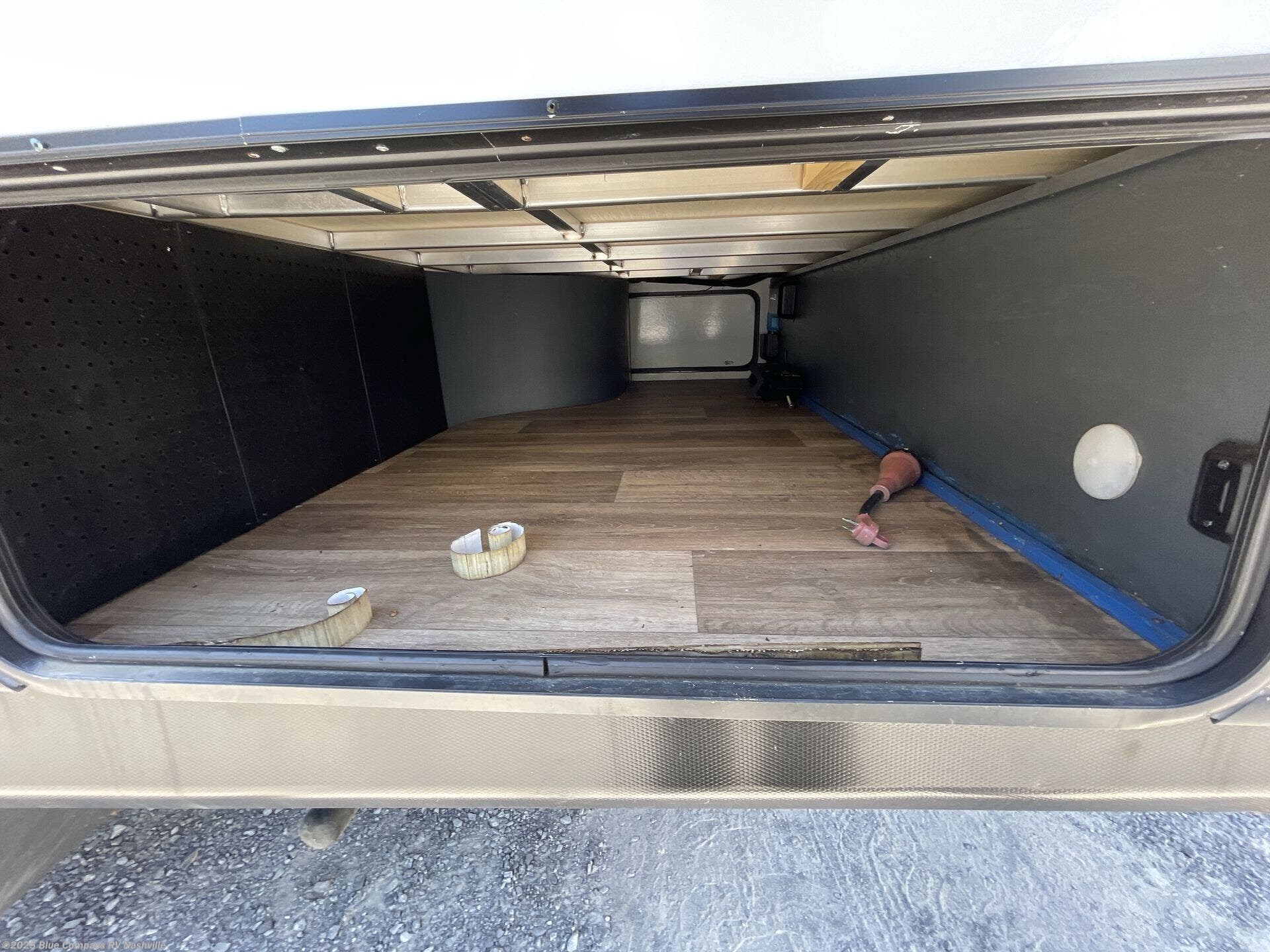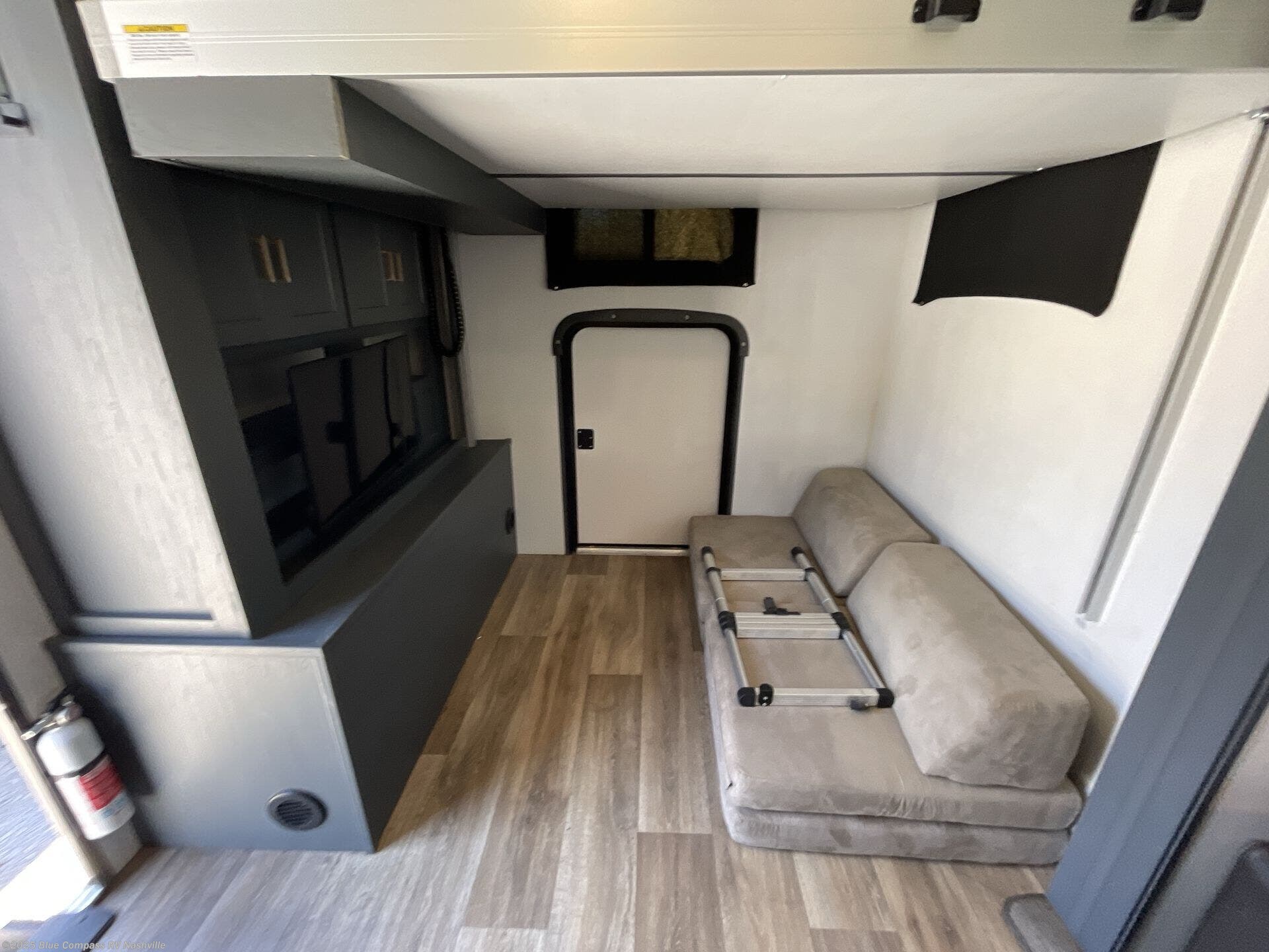 Get ready for family fun in this trailer that offers a queen bed bunk lift in the rear with a kids lounge area below which includes flip chairs. You will also appreciate being able to load items inside such as bikes or kayaks for secure travels through the exterior rear door. The slide out offers more floor space plus a tri-fold sofa and a dream dinette with easily accessible storage doors under the bench seating, and both of these furnishings provide extra sleeping space. The well-equipped kitchen offers a single basin stainless steel sink with stainless steel high rise faucet and Furrion appliances to make hot meals. And the cook will enjoy using the outdoor kitchen to make a few meals. The full front bedroom offers a queen bed with dual wardrobes, a laundry chute and the second entry/exit door.