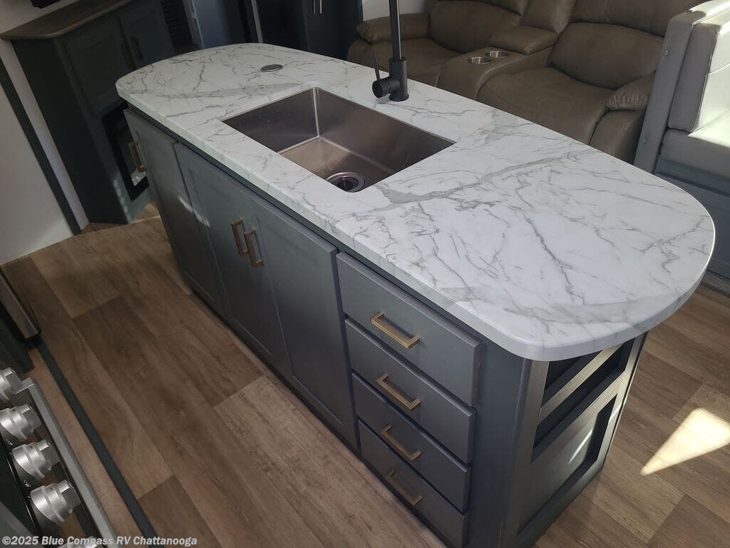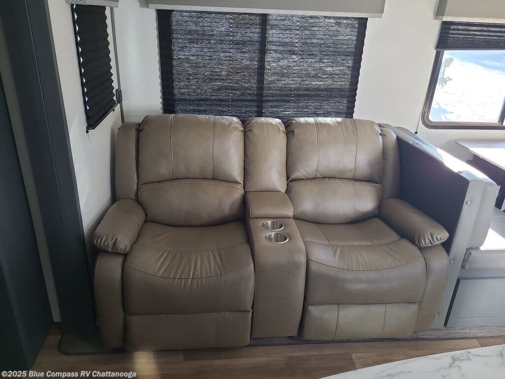 Get ready for family fun in this trailer that offers a queen bed bunk lift in the rear with a kids lounge area below which includes flip chairs. You will also appreciate being able to load items inside such as bikes or kayaks for secure travels through the exterior rear door. The slide out offers more floor space plus a tri-fold sofa and a dream dinette with easily accessible storage doors under the bench seating, and both of these furnishings provide extra sleeping space. The well-equipped kitchen offers a single basin stainless steel sink with stainless steel high rise faucet and Furrion appliances to make hot meals. And the cook will enjoy using the outdoor kitchen to make a few meals. The full front bedroom offers a queen bed with dual wardrobes, a laundry chute and the second entry/exit door.