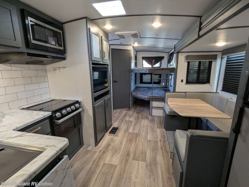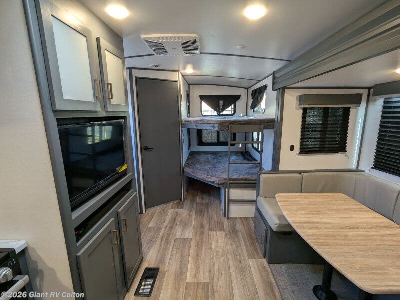 - Spacious Living: Slide-out U-shaped dinette and double bunks offer cozy kid-friendly space.