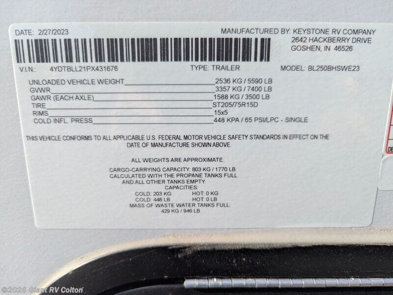 Request More Info on this 2023 Keystone Bullet West 250BHSWE Offered for sale by Giant RV