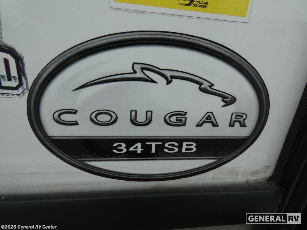 Keystone Cougar Half-Ton travel trailer 34TSB highlights: Private Bunkhouse Peninsula Countertop Outside Kitchen Master Suite Two Electric Awnings Wherever you go, you'll always have your home with you when you take this Cougar Half-Ton travel trailer along! All of the things you love most about your home have been incorporated into the design of this model. From the master suite up front to the private bunkhouse in back, you'll have comfortable sleeping areas for both you and your kids. The Keystone Cougar Half-Ton fifth wheel and travel trailers are known as one of America's favorites for a reason! Some of those reasons are the exclusive features that come from Keystone, like the preparations for 4G and Wi-Fi, the in-floor heating ducts, and the Hyper Deck flooring. The Cougar Half-Ton has a Climate Guard protection package to keep you safe during inclement weather, and you'll also find an iN-Command Generation 3 with global connect. Use the 21" Furrion range with Piezo ignition to create all of those familiar meals from home, and take charge of how you camp with the SolarFlex 200 solar power system which has been fully integrated during the building process so that you don't have to worry about trying to add it on after purchase. This system provides continuous charge to ensure the operation of 12V systems and to protect your battery.