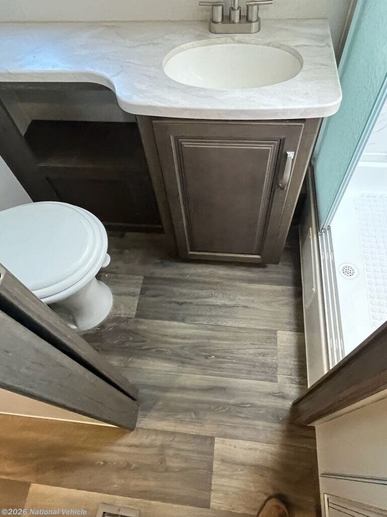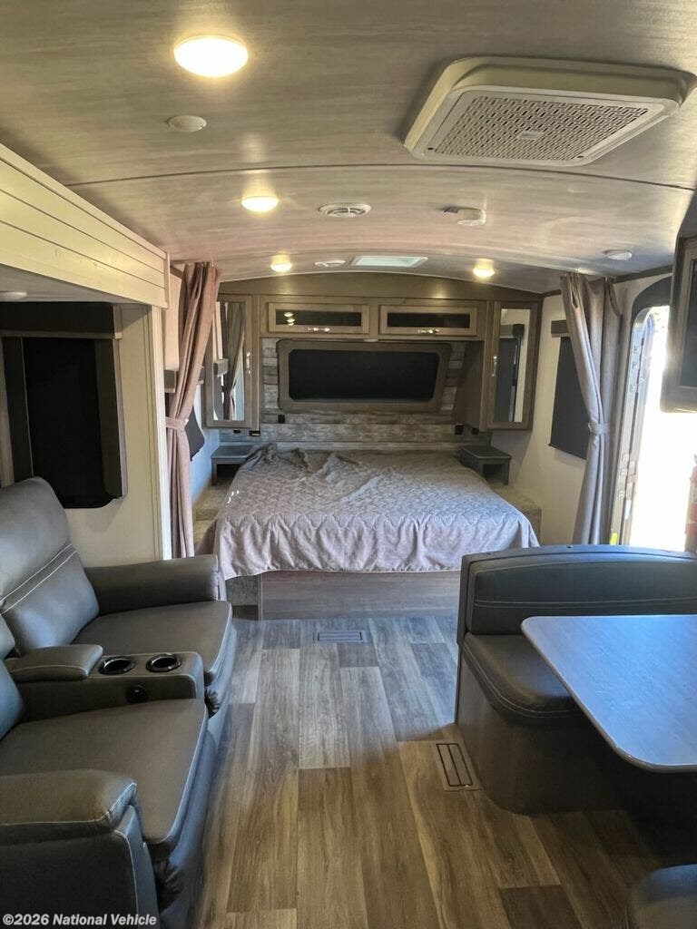 Inside, you?ll discover an open layout highlighted by a spacious slide-out that expands the living area to reveal theater-style seating and a large entertainment center. The rear bedroom offers a comfortable king bed, under-bed storage, and wardrobes for everyday ease. The kitchen boasts a 10.4 cu ft refrigerator, three-burner cooktop, microwave, and sleek countertops?making meal prep seamless while on the road.