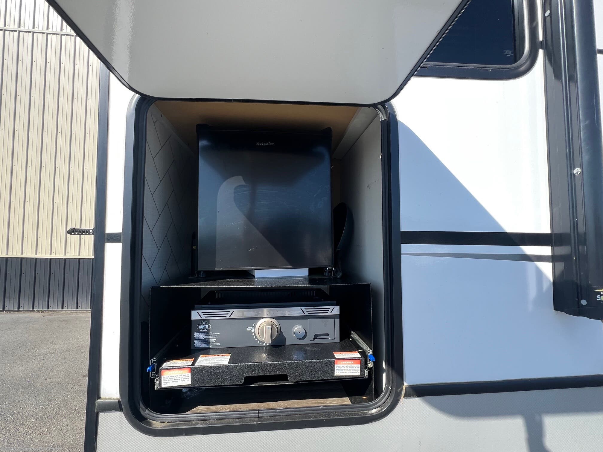 Awning, Exterior Speakers, External Shower, Hitch, Ladder, Leveling Jacks, Outside Kitchen, Skylight, Slideout, Spare Tire Kit -