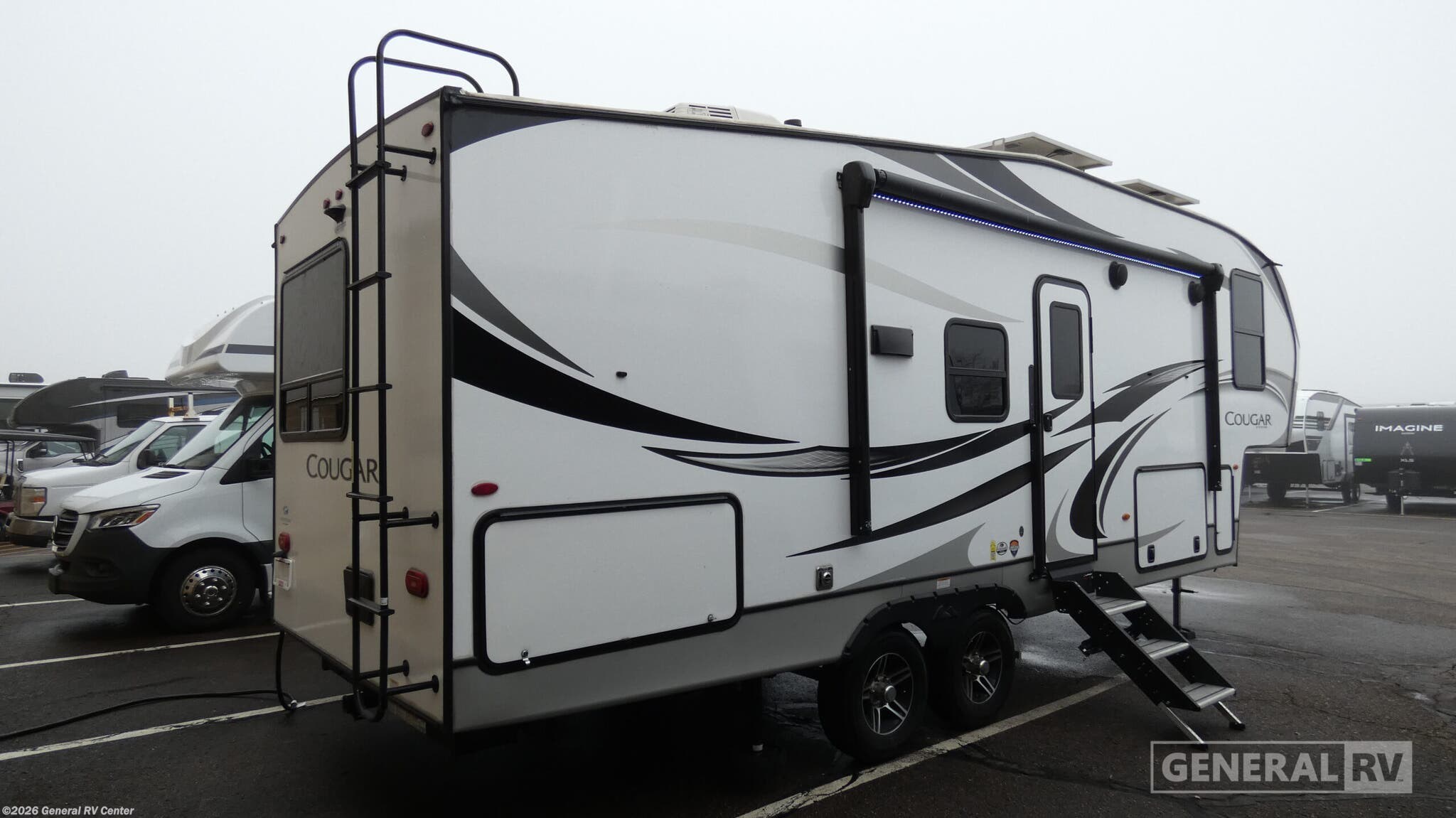 **Keystone Cougar Half-Ton fifth wheel 25RES highlights:** - Hidden Storage - Sleeper Sofa - Booth Dinette - Outside Grill - Large Slide Grab your gear, your family, and your sense of adventure and head out with this Cougar Half-Ton fifth wheel! You'll have plenty of space to bring along your favorite gear with the rear storage compartment, the hidden storage space behind the entertainment center, the linen closet, the wardrobe slide, and the exterior pass-through storage. Plus, you will also find a private bedroom for a quick nap or a night of sleep, and the 68" tri-fold sleeper sofa will be great to have when you have any afternoon visitors turn into overnight guests. The Keystone Cougar Half-Ton fifth wheel and travel trailers are known as one of America's favorites for a reason! Some of those reasons are the exclusive features that come from Keystone, like the preparations for 4G and Wi-Fi, the in-floor heating ducts, and the Hyper Deck flooring. The Cougar Half-Ton has a Climate Guard protection package to keep you safe during inclement weather, and you'll also find an iN-Command Generation 3 with global connect. Use the 21" Furrion range with Piezo ignition to create all of those familiar meals from home, and take charge of how you camp with the SolarFlex 200 solar power system which has been fully integrated during the building process so that you don't have to worry about trying to add it on after purchase. This system provides continuous charge to ensure the operation of 12V systems and to protect your battery.