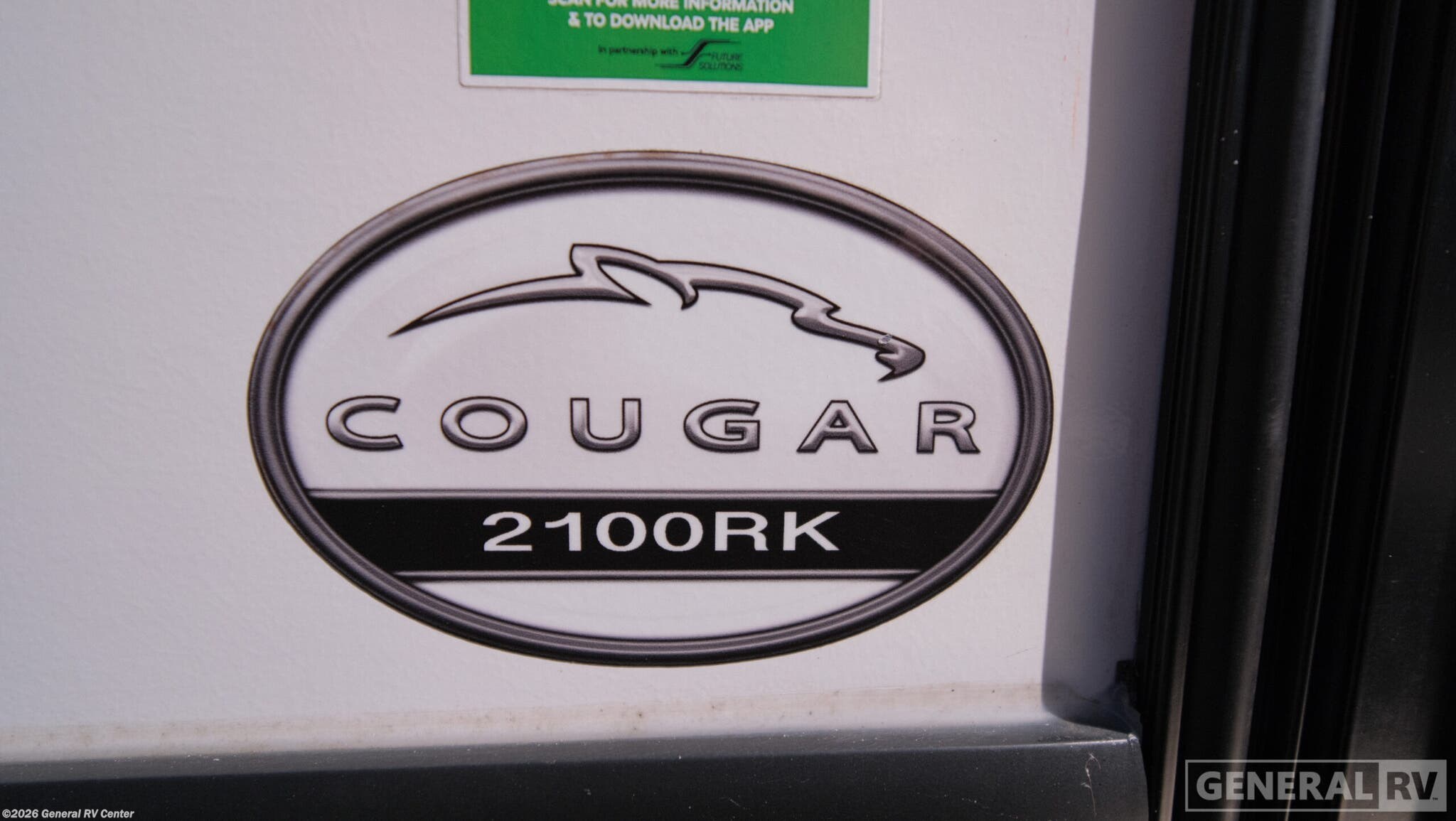 Keystone Limited Edition Cougar Sport fifth wheel 2100RK highlights: Rear Kitchen Layout Tri-Fold Sofa Sleeper Private Front Bedroom 17' Awning Your family of five or six will love traveling in this Cougar Sport lightweight fifth wheel! Enter to find a convenient rear kitchen layout just steps inside the door. Drop your shoes off in the shoe cubby to your right at the door, and relax on either the tri-fold sleeper sofa or at the booth dinette. The sofa and a 12 volt refrigerator are situated in a slide for added roominess inside. Head up the steps to a complete bath and private front bedroom featuring a queen size bed with dual shirt wardrobes and nightstands on both sides of the bed. There is also a wardrobe off the foot of the bed along the inside wall with two convenient drawers as well. The bathroom offers a shower with skylight for added headroom and natural lighting. You will also appreciate the medicine cabinet over the sink for your personal items. Back down to the main living and kitchen area, a nice size pantry will hold all of your dry goods and snacks, and there is ample storage in the overhead cabinets above the dinette on either side of the TV, plus in the kitchen area all along the rear wall. Here you can cook your family their camp favorites using either the three burner range with oven, or overhead microwave. Outside, a 17' awning provides added living space protected from the elements! The Cougar Sport structural I-beam frame with stamped steel cross-members and outriggers, plus its laminated sidewalls with five-sided aluminum superstrucure and Alpha Super Flex roof membrane are what active RVers love about the construction of the Cougar line, and the Cougar Sport limited edition models are no exception when it comes to a great package, as well as being smaller and lighter weight than their big brother Cougar models. A one-piece, heated and enclosed polypropylene underbelly means a longer camping season. On the inside, residential shaker style hardwood cabinet doors and decorative crown molding, plus seamless pressed countertops and an on-demand water heater will make your unit feel even more like home. You are also sure to appreciate the Barnwood style decorative accent wall behind the bed, a porcelain foot flush toilet in the bathroom, plus residential kitchen hardware and so much more.