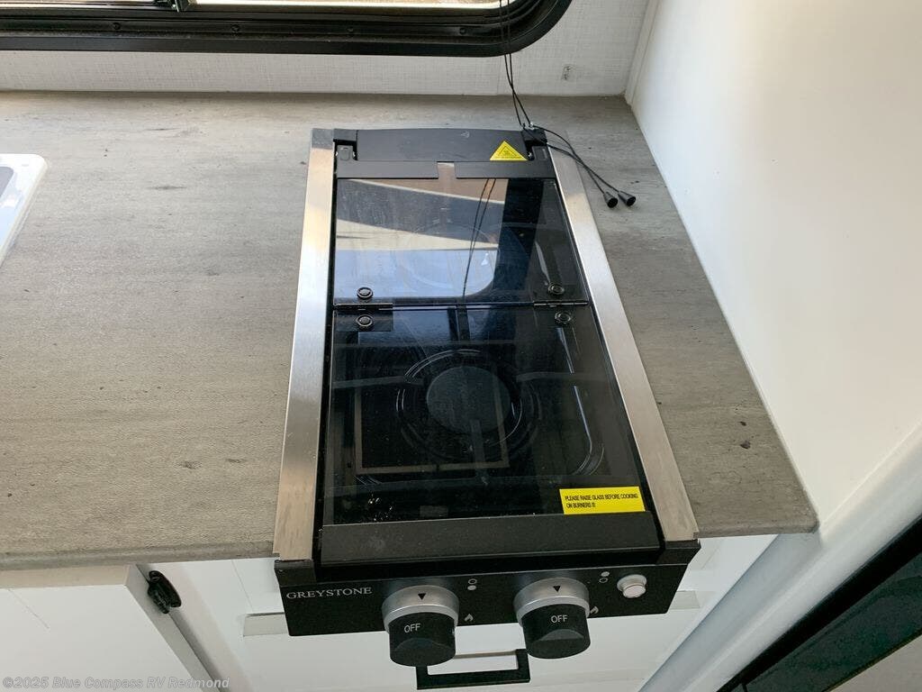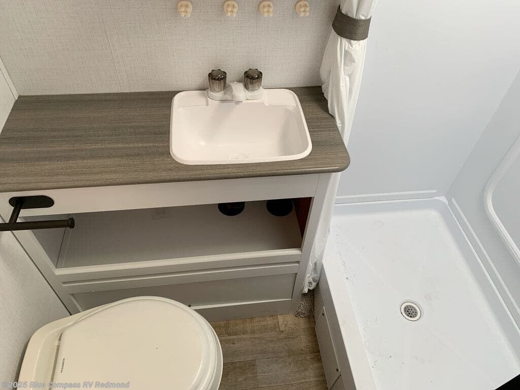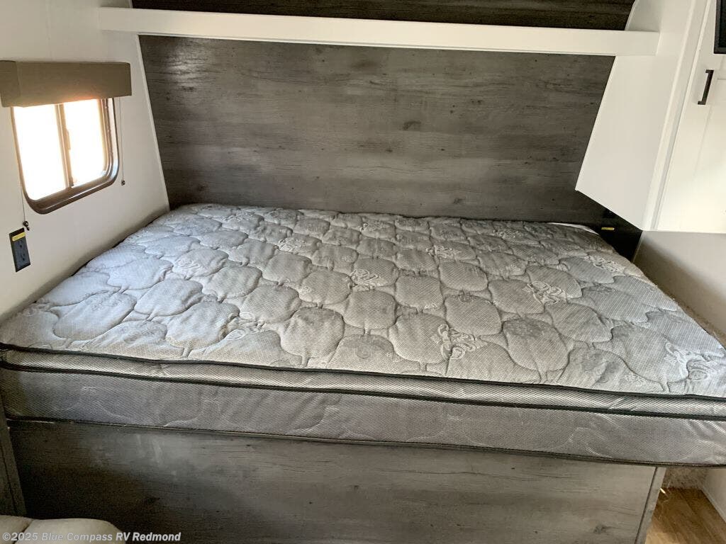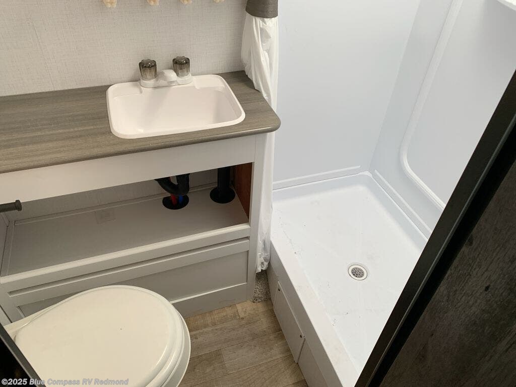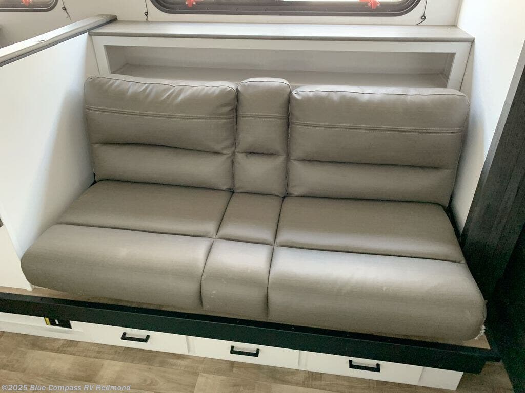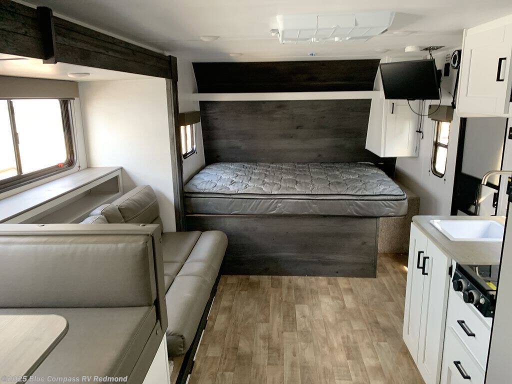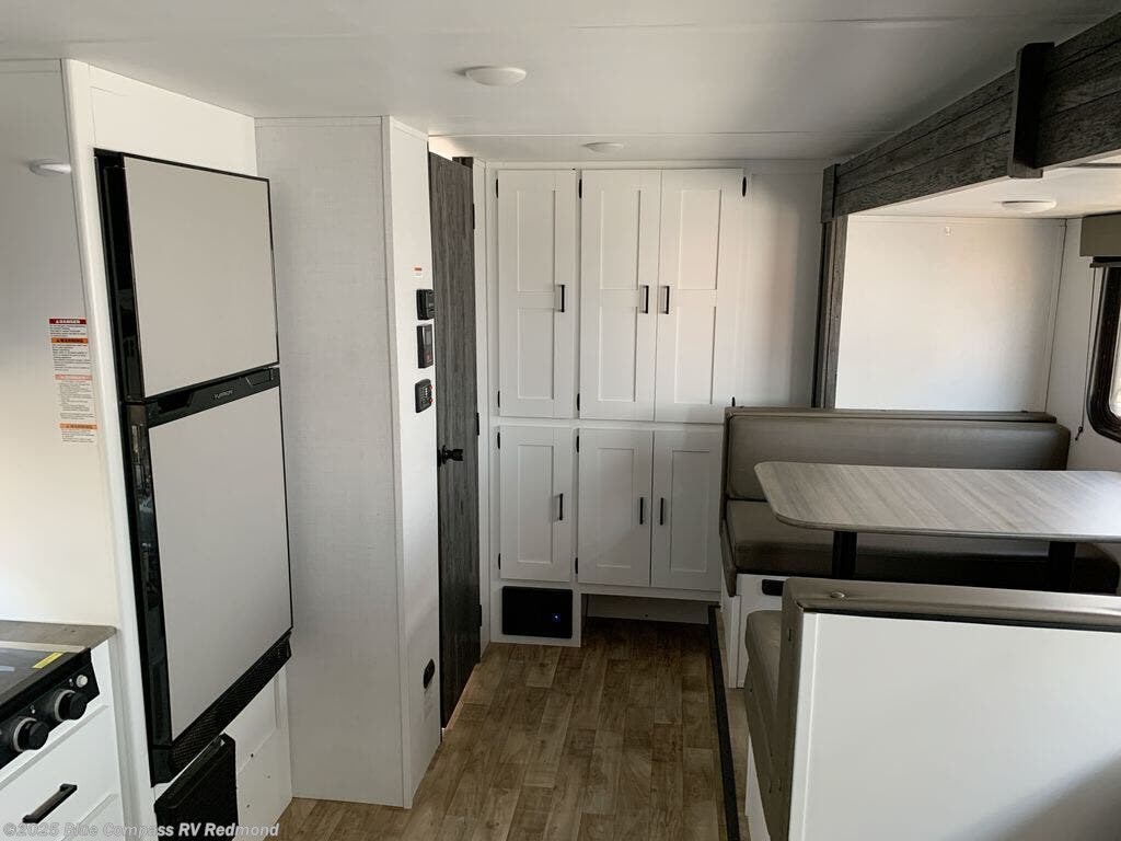 Looking for a spacious interior in your next RV to relax and unwind, yet isn't so big you can't park it in your driveway? This trailer offers just that with a large slide out which includes a booth dinette and a jackknife sofa with a countertop behind to place your cellphones and drinks on. You will also find storage drawers below, and there is a large pantry/wardrobe along the rear wall for all your goodies and such. The corner full bathroom provides a walk-in shower for easy entry when getting cleaned up after a hike. The cook will love the galley kitchen with a two burner gas range and microwave, plus a 7.7 cu. ft. refrigerator. And the queen-size bed will allow you to sleep like you are at home.