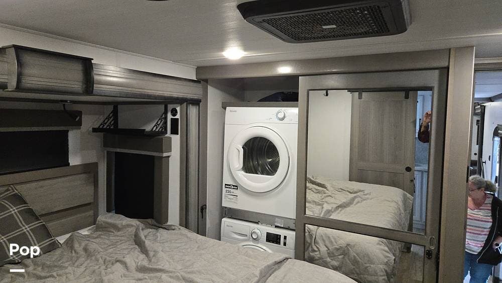 This unit offers upgraded amenities: washer/dryer, two mini-split style A/C systems, solar, and a six-point leveling system.
