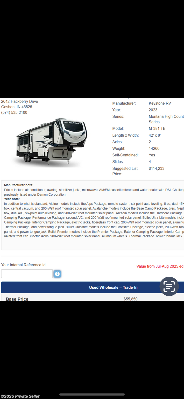 Request More Info on this 2023 Keystone Montana 381tb Offered for sale by For Sale By Owner