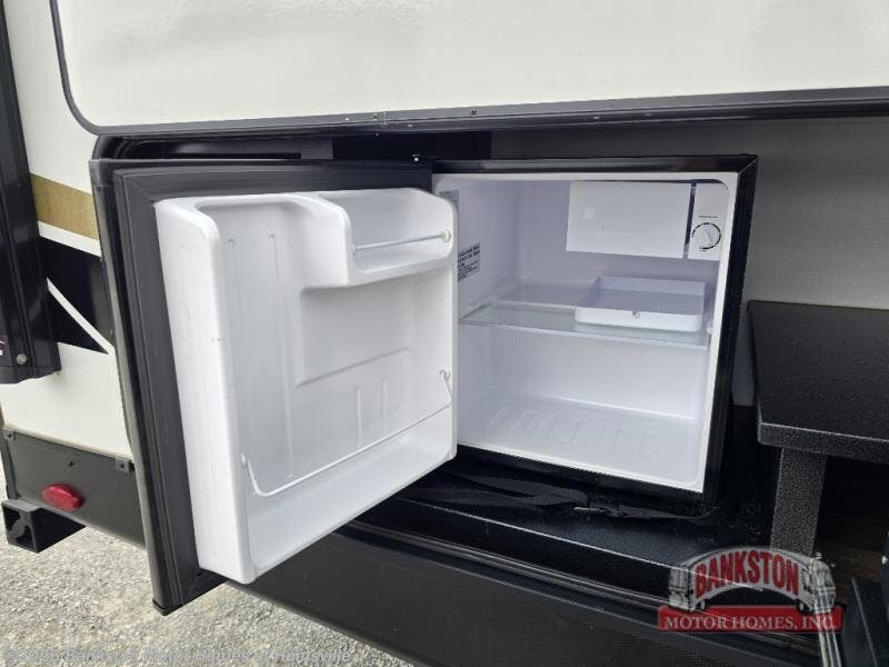 Loaded with features, you are sure to enjoy each and every camping trip in this trailer with your family and friends every chance you get! You can load up the pass-through storage with the larger camping gear like camp chairs, folding tables, charcoal and even fishing poles. The 21' awning offers an outdoor living area with some protection, the outside kitchen gives the cook choices when feeding everyone, and the LCI Solid Step entry allows a safe entrance and exit. There is a private rear bunkhouse with triple bunk beds, a sliding door for privacy and a window for views. The main living and kitchen area is spacious with a slide out booth dinette and sofa sleeper or choose the theater seating option. Everyone can gather to watch the 40" TV and enjoy the fireplace. You will also find a double entry bathroom, and a private front bedroom to sleep like a queen with your pet.