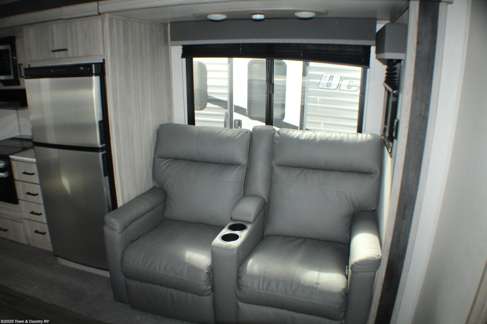 Front Bedroom - Back Bathroom: 1 Slide, Air, Awning, Furnace, Back Ladder, Theater Seating, Booth Dinette, Refrigerator, Microwave, Oven/Stove, Pantry, TV, Sleeps 4, GVWR: 7,200#, Unloaded Weight: 5,350#.