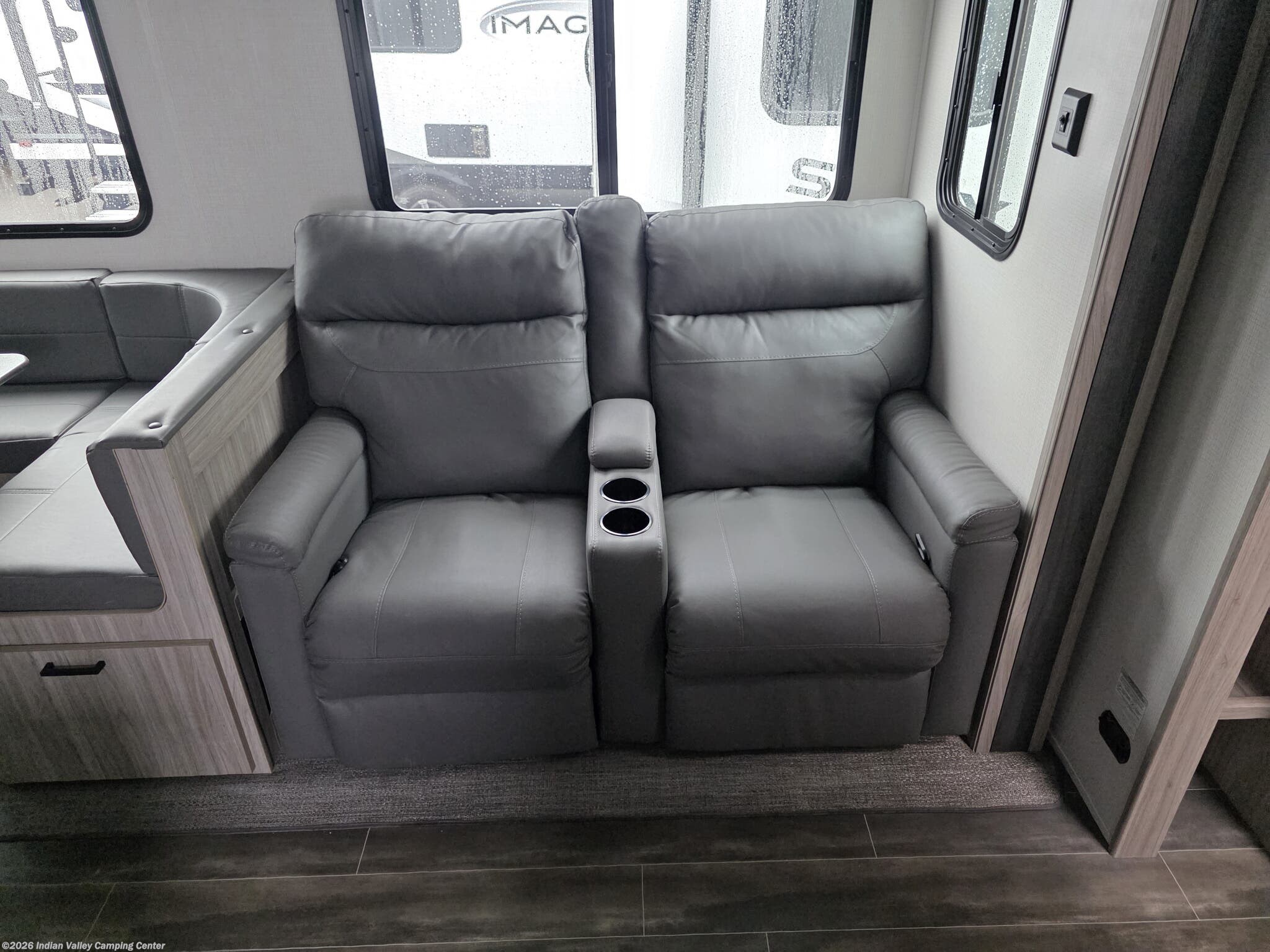 The 3352BH floorplan maximizes living space with two slides that open up the interior, making room for family meals, games, and relaxed downtime. With two entry doors, loading and accessing the RV is convenient from either side of the unit. The interior is designed for practical use, balancing broad living areas with efficient storage to keep gear organized on longer trips.