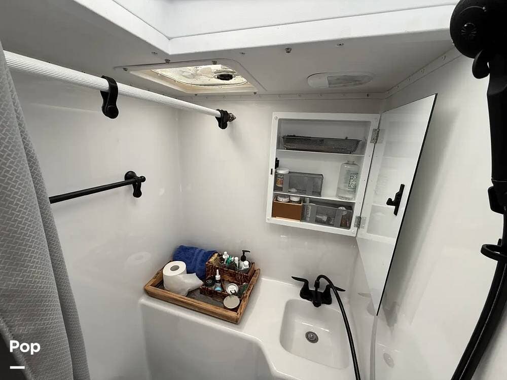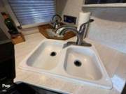 This floor plan offers a spacious cab-over queen bed, a well-equipped kitchen with stainless steel appliances, and a U-shaped dinette that converts easily into extra sleeping space. This unit features an extra BattleBorn Lithium battery, added solar panel, power jacks and more see the features list.