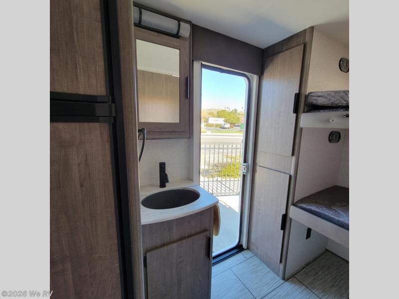 Grab your family, your hiking gear, your sense of adventure, and this Lance travel trailer, and head out on a new journey! Life will be great when you have a deluxe queen pillowtop innerspring mattress to rest on each night, and the set of bunk bunks in the back allows your kids to have their own sleeping space as well. You can even add a couple more people to the group by using the U-shaped dinette as a bed. The two entry doors give this trailer great accessibility, and you'll find entertainment each night from the 24" Smart LCD TV. You can even switch out the front queen bed for an optional convertible sofa bed if that sounds nicer to you.