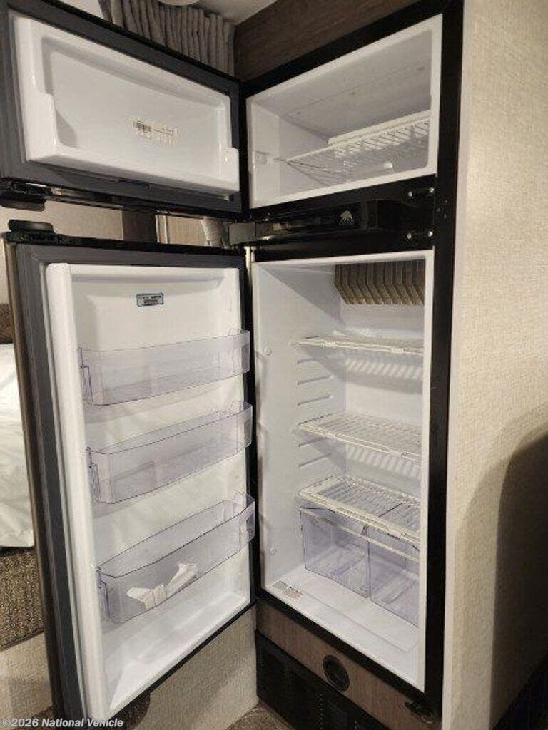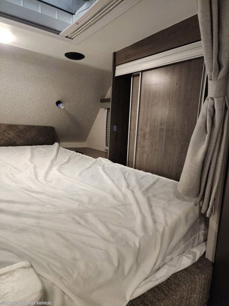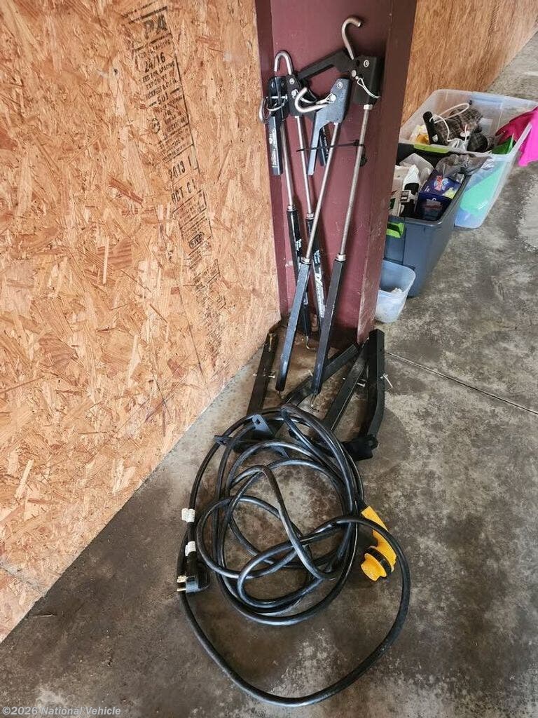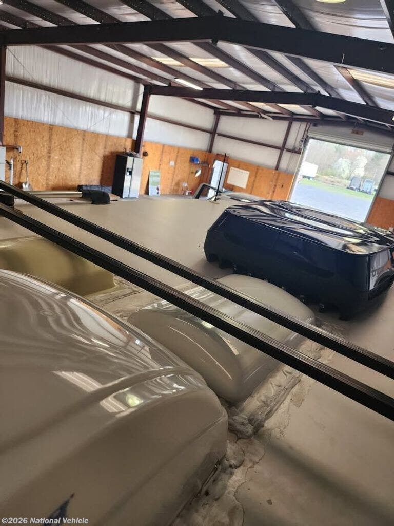 Aerodynamic nose cap (new in 2023), electric jacks, tinted thermopane acrylic windows, keyed-alike storage compartments, exterior wash station, and propane connection. solid surface countertop, and EuroPly cabinet construction.