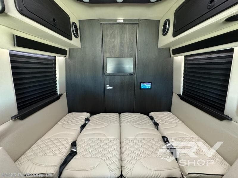 Just imagine you and seven others traveling to a local tournament or festival with this Daycruiser 144 Class B diesel van. This coach will safely carry everyone in comfort with the Maybach-style seating. Two people can even take a nap on the sofa/foldout beds while the others enjoy the great outdoors once you have reached your destination. The passengers may decide to watch the LED HDTV and listen to the movie through the wireless head phone system. Someone can even heat up soup or leftovers in the overhead 110V microwave and grab a drink from the refrigerator. And the rear wall entry door offers more safety and convenience, so take a look today!