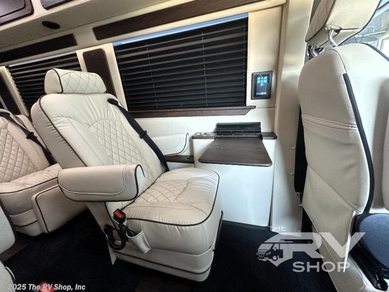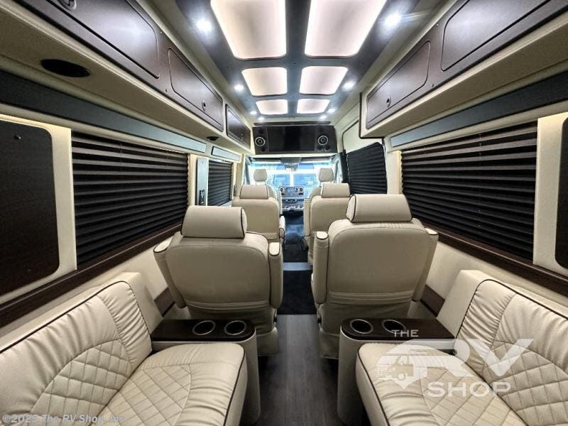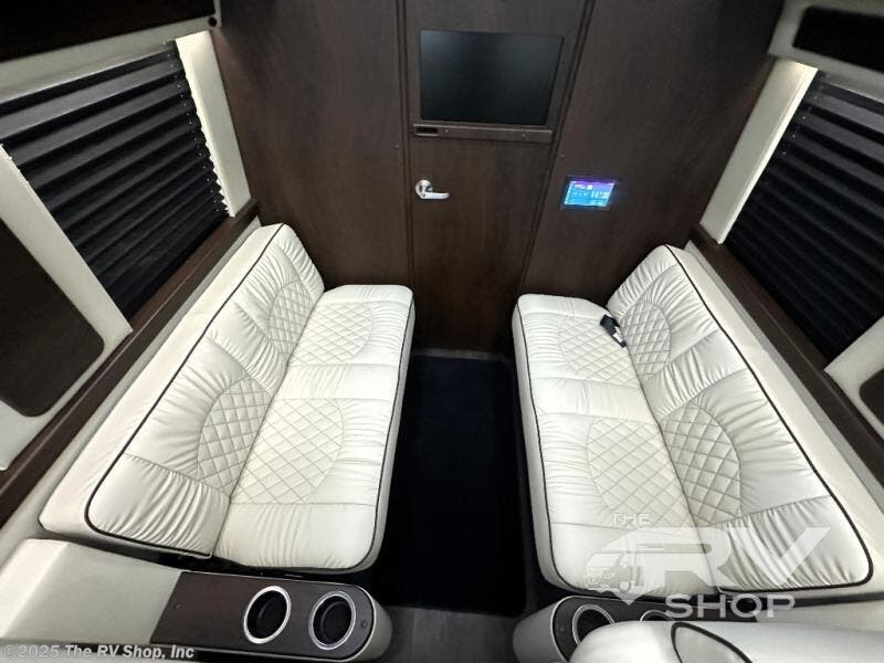 Load up the family or your group of friends in this Daycrusier Class B diesel van which includes six captain's chairs and two sofa/foldout beds with a total of ten seatbelts. Now imagine where everyone will sit while enjoying the luxurious interior, the comfortable seating, and the beautiful highway scenery. Once at your destination, you can all watch movies and shows on the LED HDTV for some down time and eat snacks and meals cooked in the 110V microwave. Your guests will surely enjoy using the wireless head phone system while relaxing on the Maybach-style seating. Don't forget about the convenient private toilet room which includes a sink and a refrigerator. Come see how this model will fit your traveling needs.