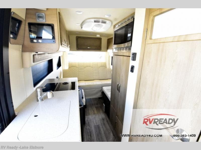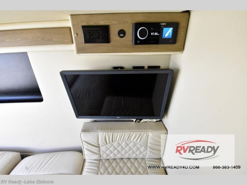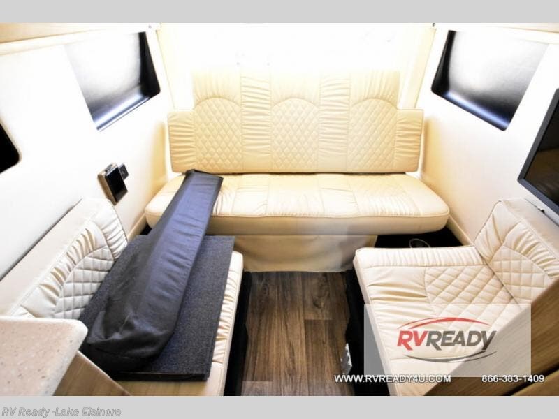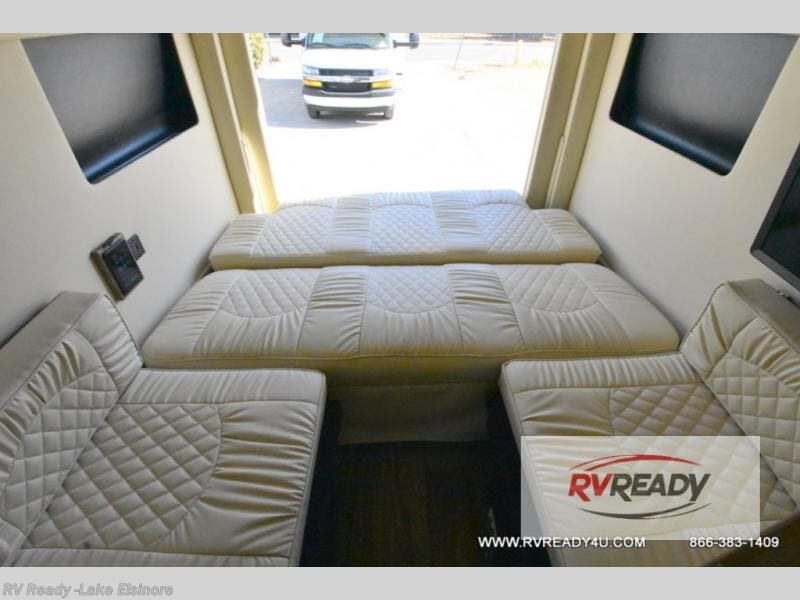 Start traveling like you are driving an SUV yet you will have your own bedding for two to three people once the rear power lounge is set up with the two side sofas for the night. You can watch a movie on the Samsung HD LED Smart TV when you wake up before making breakfast in the convection microwave or on the induction cooktop. You might like to grab a snack from the overhead cabinets instead. And the removable table/dinette will allow you to eat a meal or do some work while sitting comfortably on the leather seating. There is a mid-coach wet bath to stay refreshed and ready for whatever you decide to do next! You might even like to add the Onan 2.2 propane generator option for extra power.