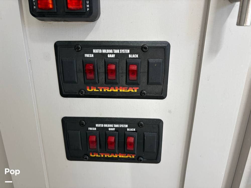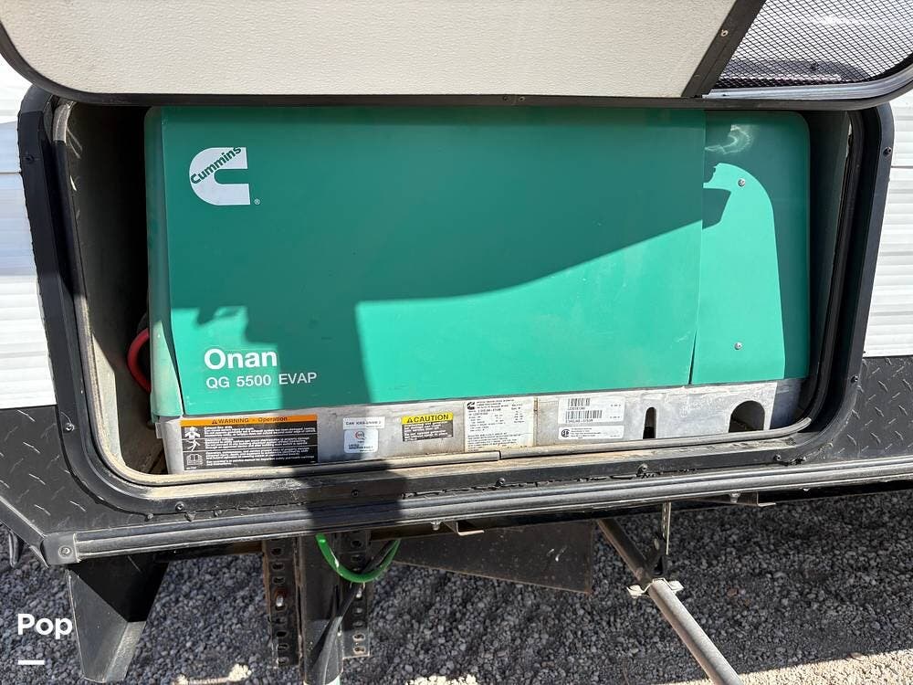 On the exterior, you'll enjoy a power patio awning with LED lighting, additional storage compartments, an Onan 5.5kW generator with a 30-gallon fuel tank, and rugged construction built to handle your adventures.