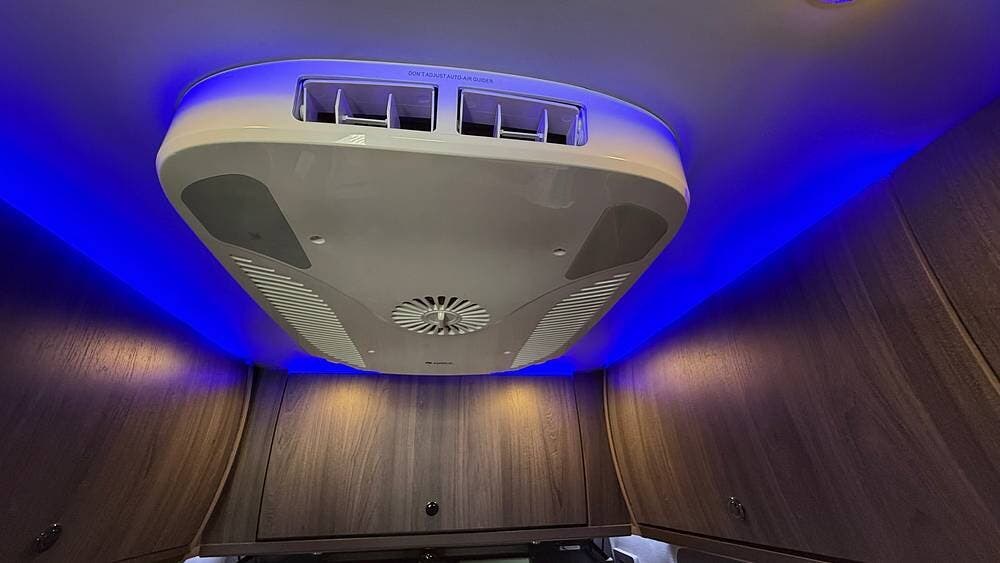 Outside is an enormous power awning with LED lights, where you can relax in the shade or under the stars.