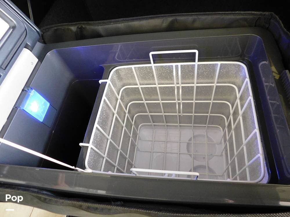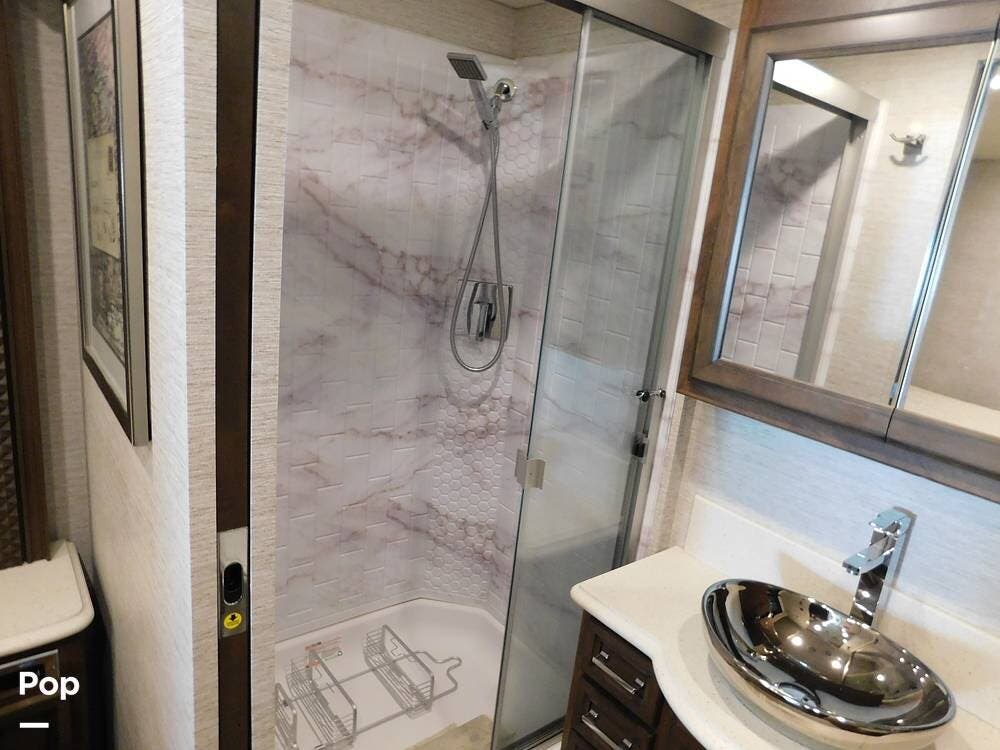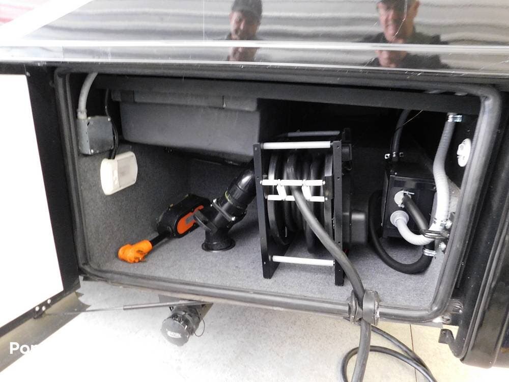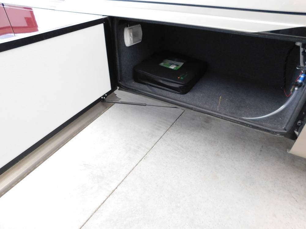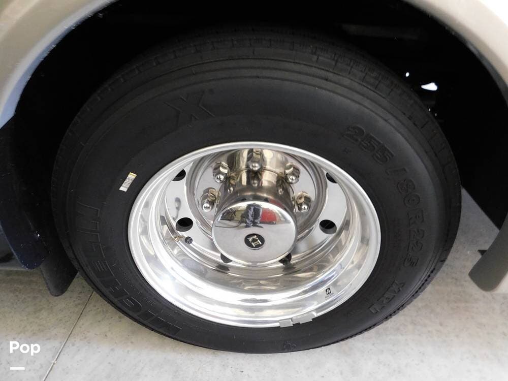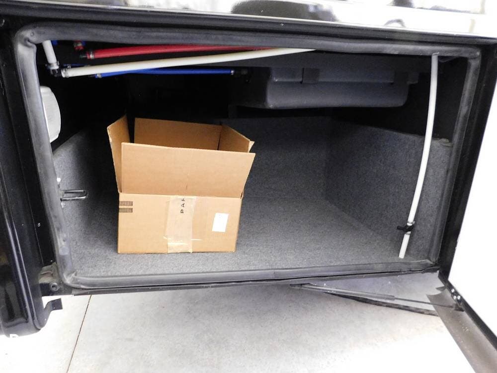 Other seller upgrades include a Glendening power cord reel, surge protector, Lippert automatic entry steps, chrome mirror, tire covers and a slide-out basement refrigerator/freezer.