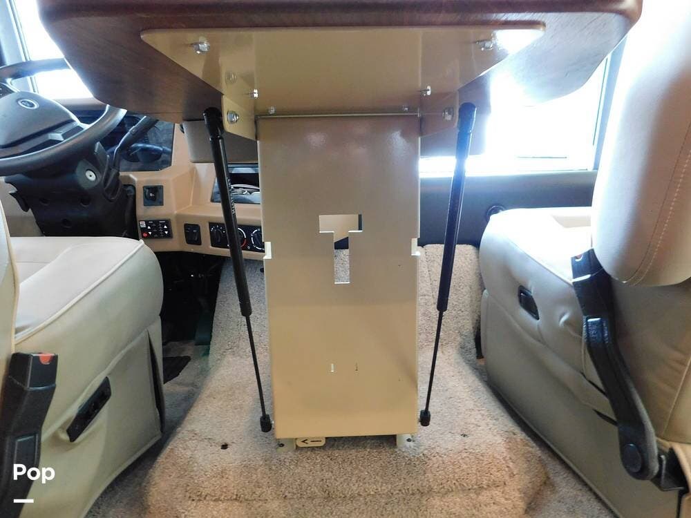 The cockpit seats swivel, and the seller added a handmade black walnut table in the middle.