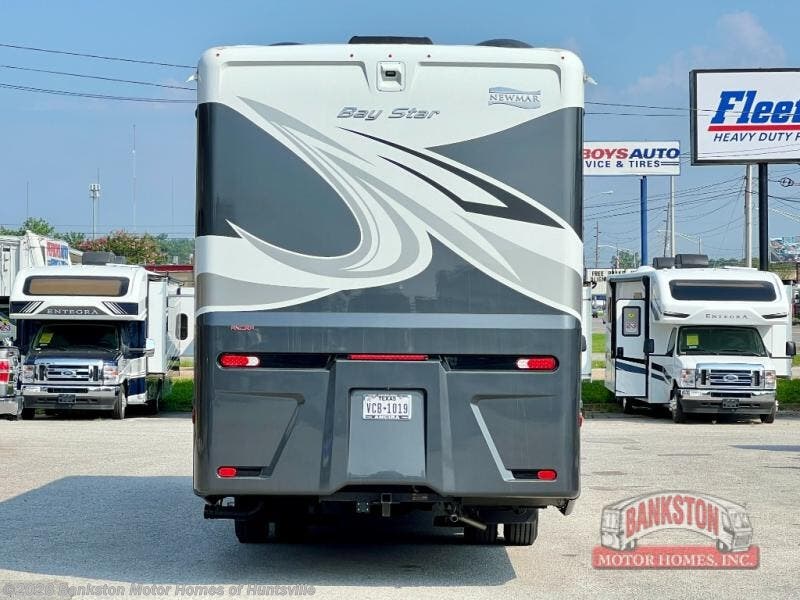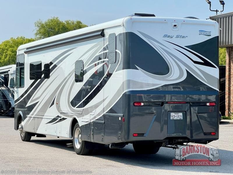 Each Bay Star Class A gas motorhome by Newmar delivers a smooth ride thanks to the standard electronic stability control, along with the 7.3-liter V8 engine with 450 HP and 468 lb./ft. of torque and heavy duty sway bars. The exterior is sure to turn heads with its Full-Paint Masterpiece Finish, and you'll have three interior decor choices and three wood choices to truly make the coach your own. Each model includes newly styled Williamsburg furniture, luxurious vinyl tile flooring, polished solid surface countertops in the kitchen, plus many more comforts. Head outside to find lit basement storage, a 5.5kW Onan generator with remote switch, and smart level hydraulic leveling jacks with a Bluetooth compatible touch pad for set up easy as 1-2-3! You can further customize your coach with the many options that are offered, such as the optional exterior entertainment center, the optional fireplace in the living room, and the optional Whirlpool refrigerator to name a few!