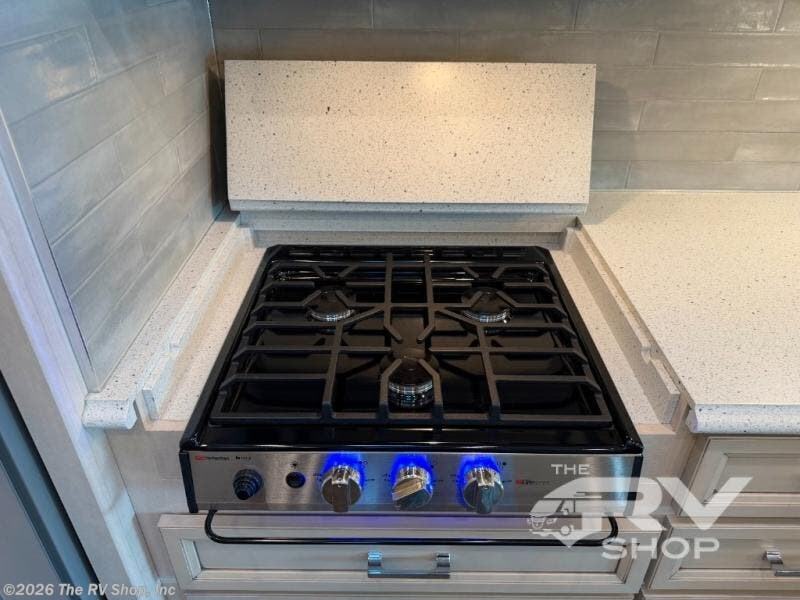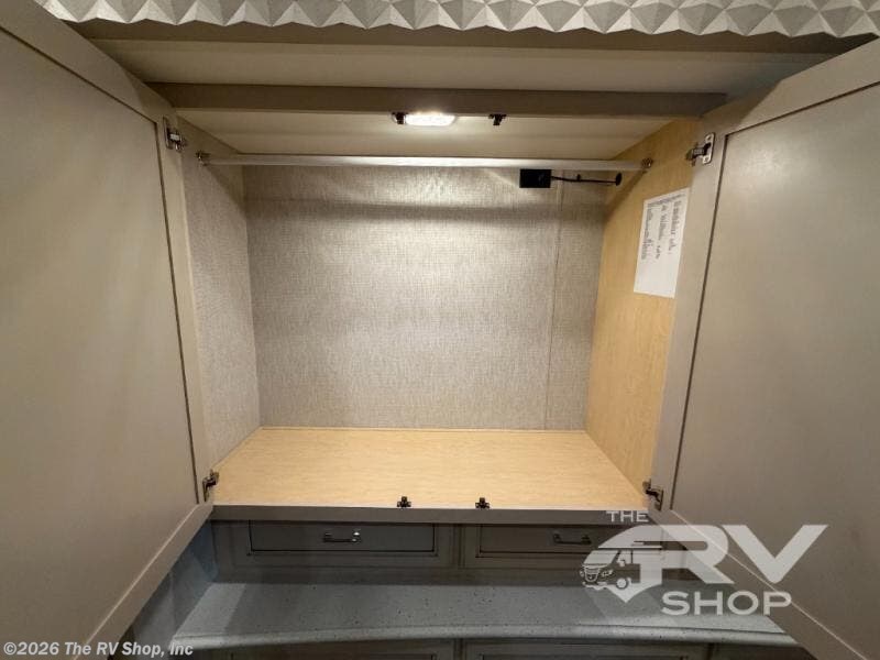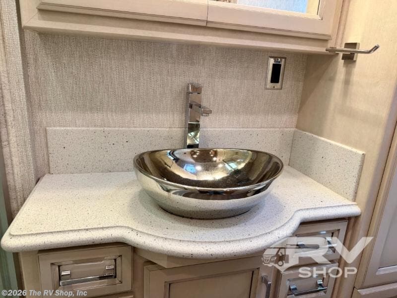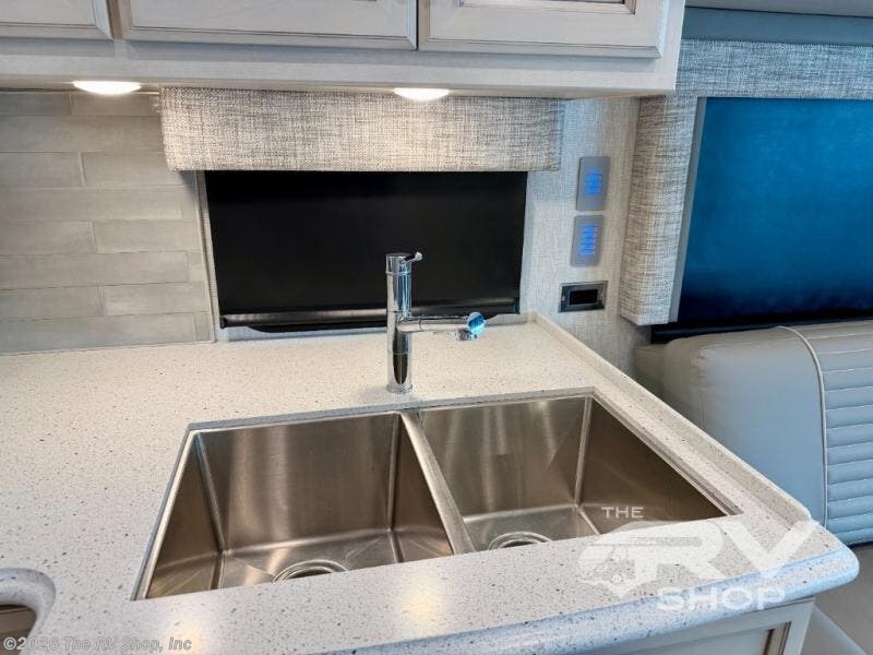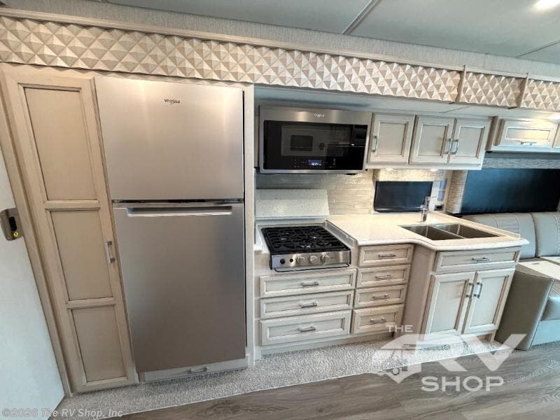 This coach is the perfect companion to take across states since it will feel just like home. There is a full-wall slide that will open up your living space, plus two additional slides so you won't feel confined. You will love the master bedroom and the full rear bath that includes a linen closet for clean towels, and there is a mid-coach half bath with a wardrobe that can be optioned out for an optional Splendide stacked washer and dryer. The chef of your group will have a 30" convection microwave and a three burner cooktop to prepare meals each day, and there is a booth dinette where you can all dine together. You might want to relax on the 74" sofa after dinner and watch a movie on the TV on power lift!
