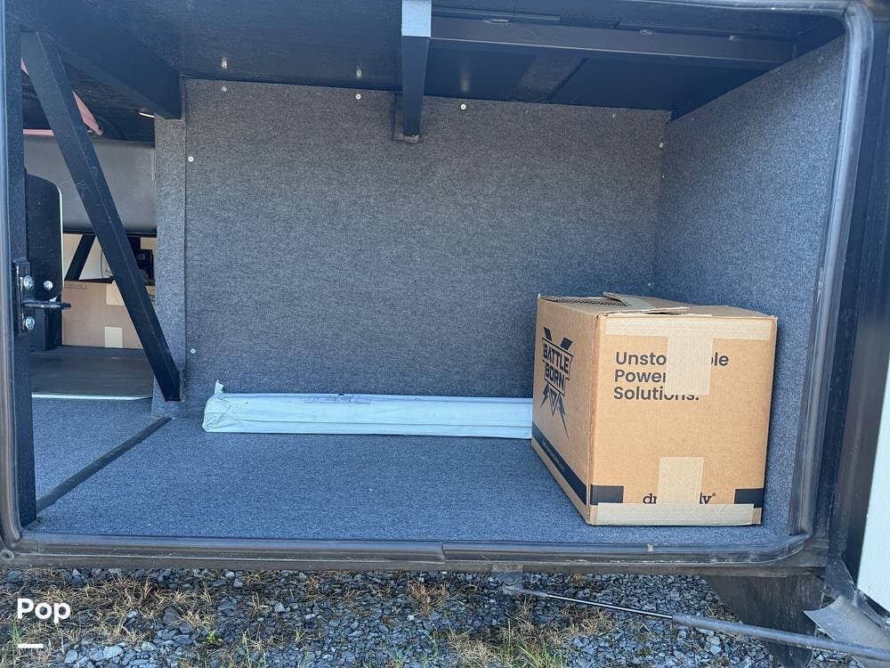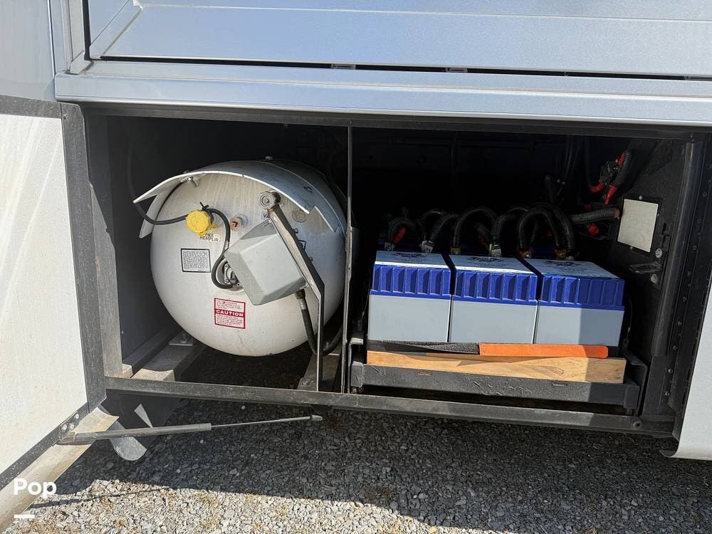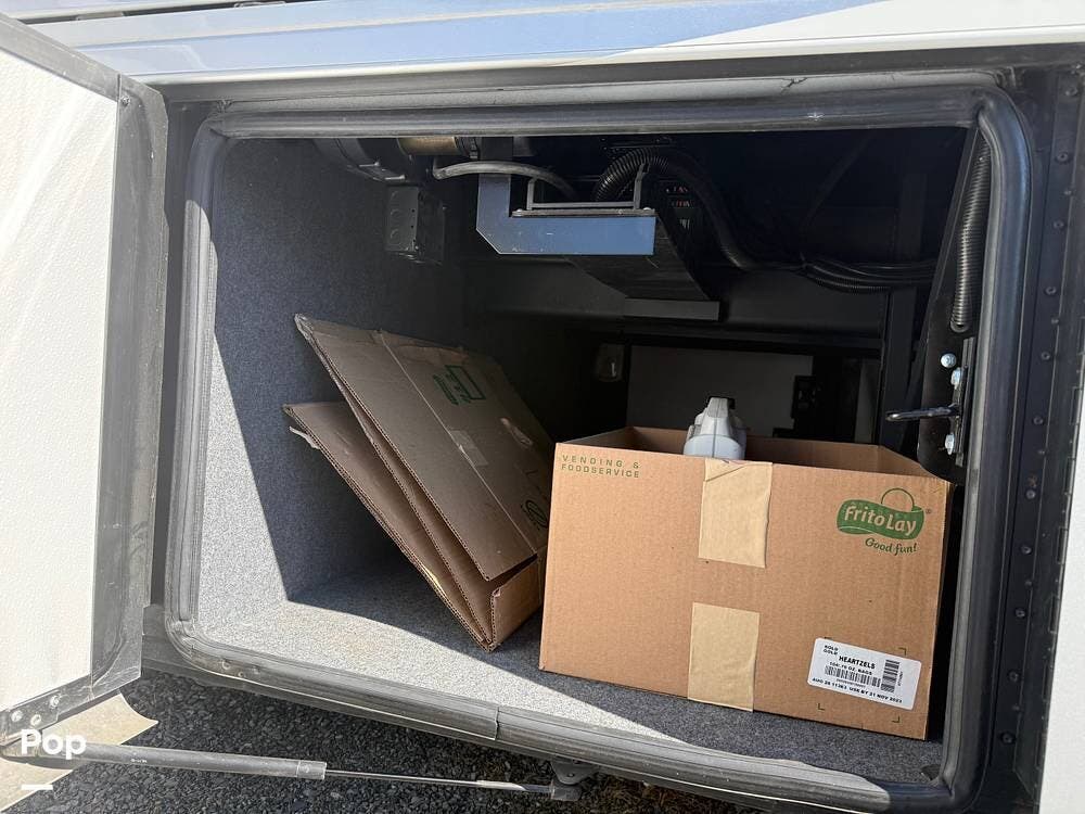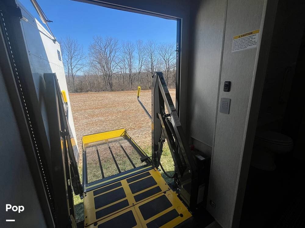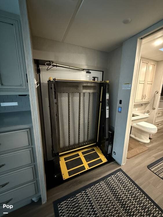 Outside, find a full Paint Masterpiece Finish with a clear coat, ensuring a durable, high-gloss look, a BraunAbility electric lift ensures easy wheelchair access, alongside an automatic entry step, a standard Carefree Traveler power side awning with LED strip lighting and an exterior TV. Also, large pass-through storage compartments, with some models offering power cargo trays.