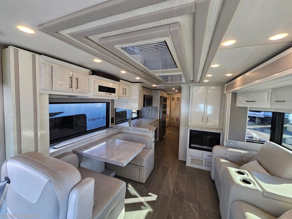 Presenting the 2023 Newmar New Aire 3543, an exquisite RV that merges luxury with practicality, designed specifically for families eager to embrace adventures on the road. This model stretches an impressive 35.76 feet in length and boasts a sturdy GVWR of 38,601 pounds. Powered by a reliable diesel engine and enhanced with a Spartan chassis upgrade, it delivers the strength, stability, and premium ride quality expected from a top-tier luxury coach. Accommodating up to 6 passengers, the New Aire 3543 is a perfect companion for family getaways or gatherings with friends. This coach has been thoughtfully upgraded with heated flooring, theater seating, and a lower bay refrigerator, creating an interior environment that maximizes comfort for extended stays. It also includes three high-capacity lithium batteries (960Ah total), ideal for off-grid flexibility, along with Starlink High Performance to keep you connected anywhere your travels take you. Safety and confidence on the road are further elevated with the addition of RettroBand run-flat protection, offering an extra layer of security during long journeys. On the exterior, the stunning finish is protected with a Diamond Paint Coating, maintaining a brilliant appearance and long-term durability. Featuring three slide-outs that expand the living space, this New Aire offers a stylish interior designed for both relaxation and entertainment. The open layout includes a centralized kitchen and generous living area, giving you all the comforts youâd expect from home while traveling. When itâs time to enjoy the outdoors, the exterior is equipped with a convenient awning for shade and relaxation. Designed with user convenience at the forefront, this RV maintains a dry weight of 34,001 pounds and a towing capacity of 10,000 pounds, giving you versatile travel options. As you embark on every journey, the New Aire 3543 does not merely offer transportation; it opens the door to a lifestyle filled with comfort, confidence, and elegance. Whether parked in a picturesque campground or exploring a hidden gem, this RV ensures that your travels become cherished memories.As a family-owned, award-winning local RV dealer with multiple locations in Sumner, Everett, Kent, and Mt. Vernon, Washington, Poulsbo RV is here to help you find the perfect RV. Stock#: CCP5326, VIN: 4VZAT1D16PC093408.