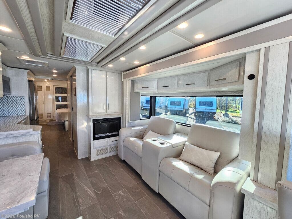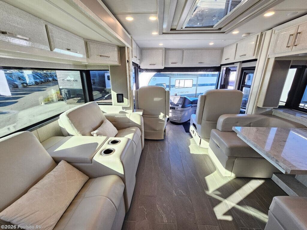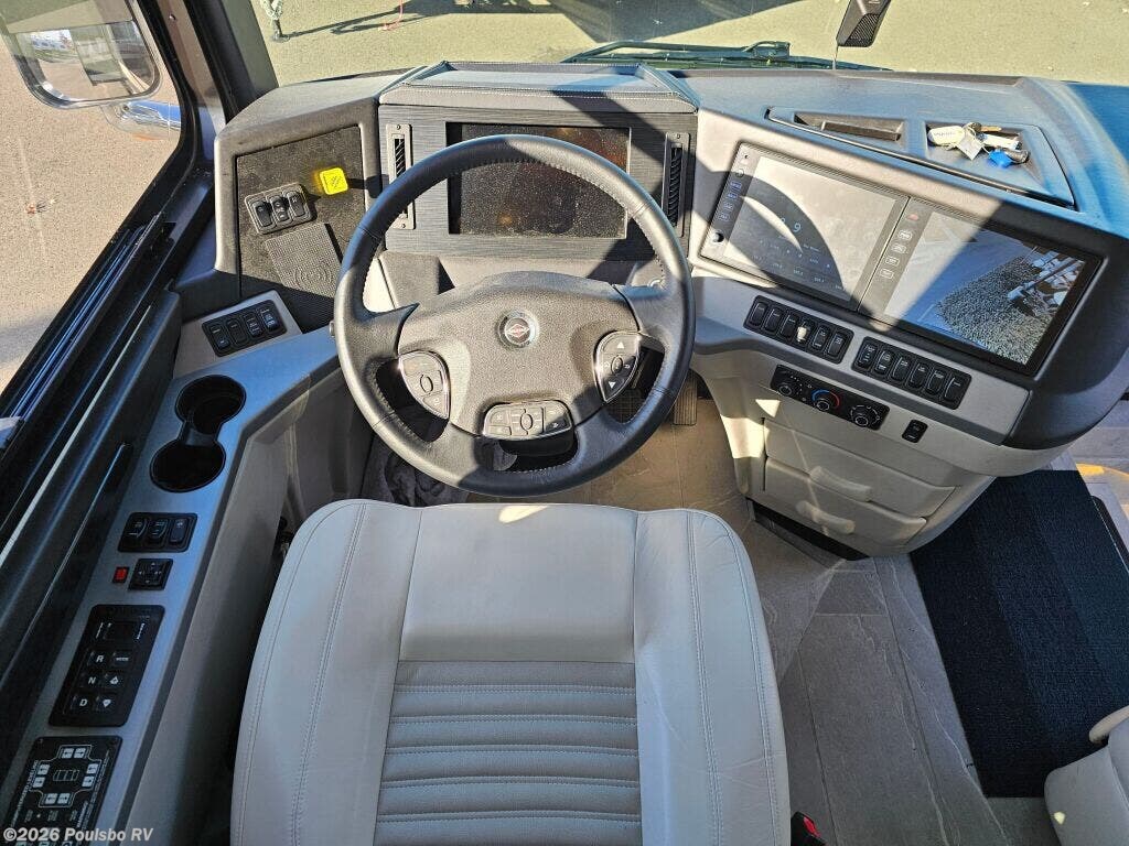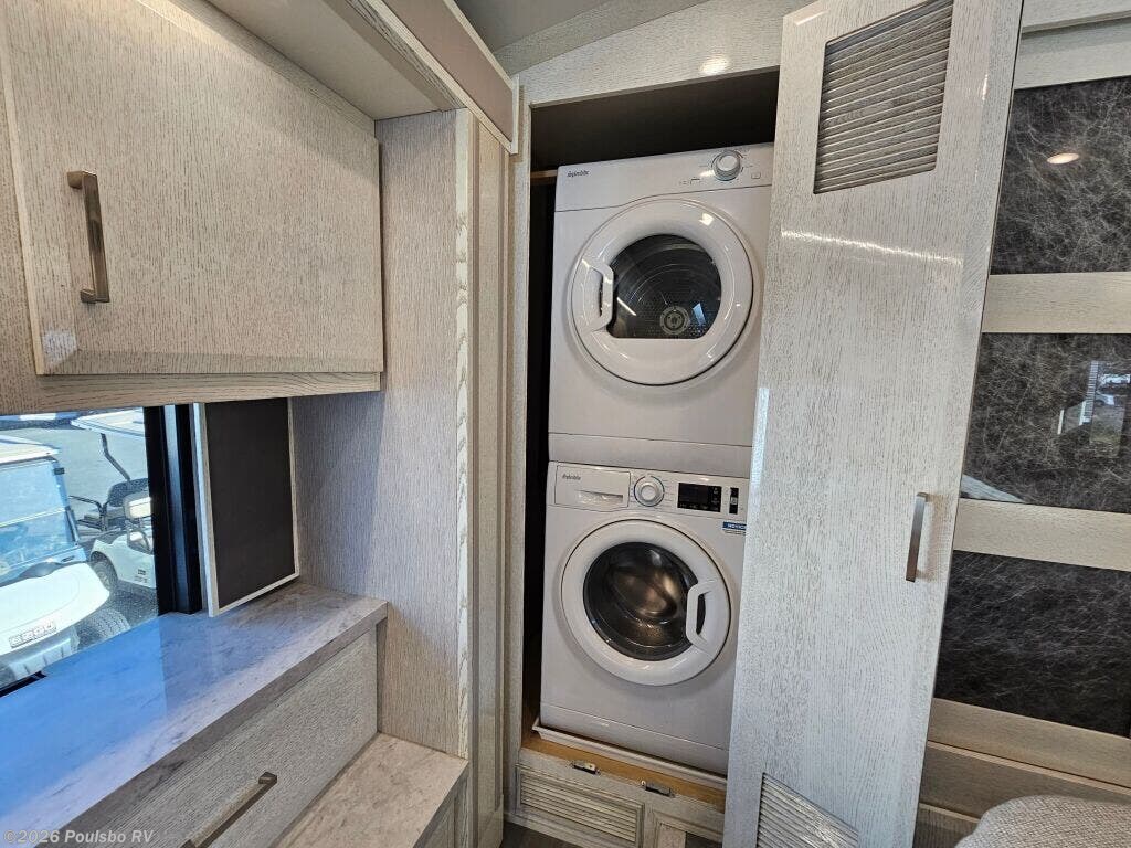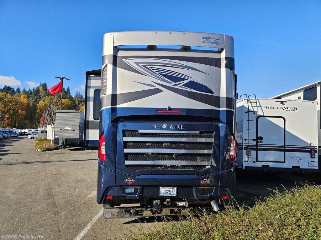 The 2023 Newmar New Aire 3543 is a used luxury diesel motorhome designed to elevate your RV experience with 35.76 feet of refined living space. Ideal for families or groups seeking comfort on the road, it accommodates up to six people with flexible sleeping arrangements that ensure a restful night for everyone. This model features three slide outs, significantly expanding the interior to create a spacious atmosphere perfect for relaxing and entertaining. Step inside to discover a thoughtfully designed living area that blends comfort and convenience, allowing you to unwind after a day of travel. The single awning provides ample shade and outdoor living options, enhancing your connection with the great outdoors. Practical additions like leveling jacks contribute to a stable setup wherever you park, while the powerful diesel engine combines efficiency and strength with a towing capacity of 10,000 pounds for added versatility. The New Aire 3543 from Newmar is built to support your adventures with reliable performance, a spacious interior, and distinctive features tailored to modern RVers. As a family-owned, award-winning local RV dealer with multiple locations in Sumner, Everett, Kent, and Mt. Vernon Washington, Poulsbo RV here to help you find the perfect RV. Stock#: CCP5326, VIN: 4VZAT1D16PC093408.