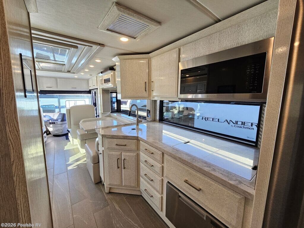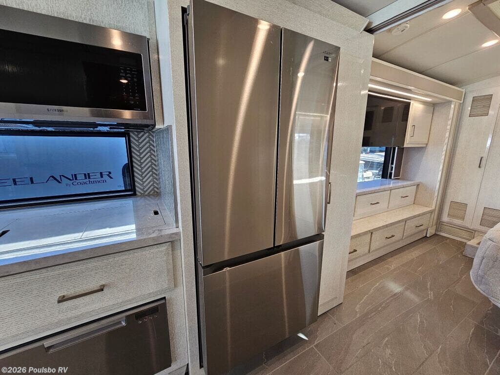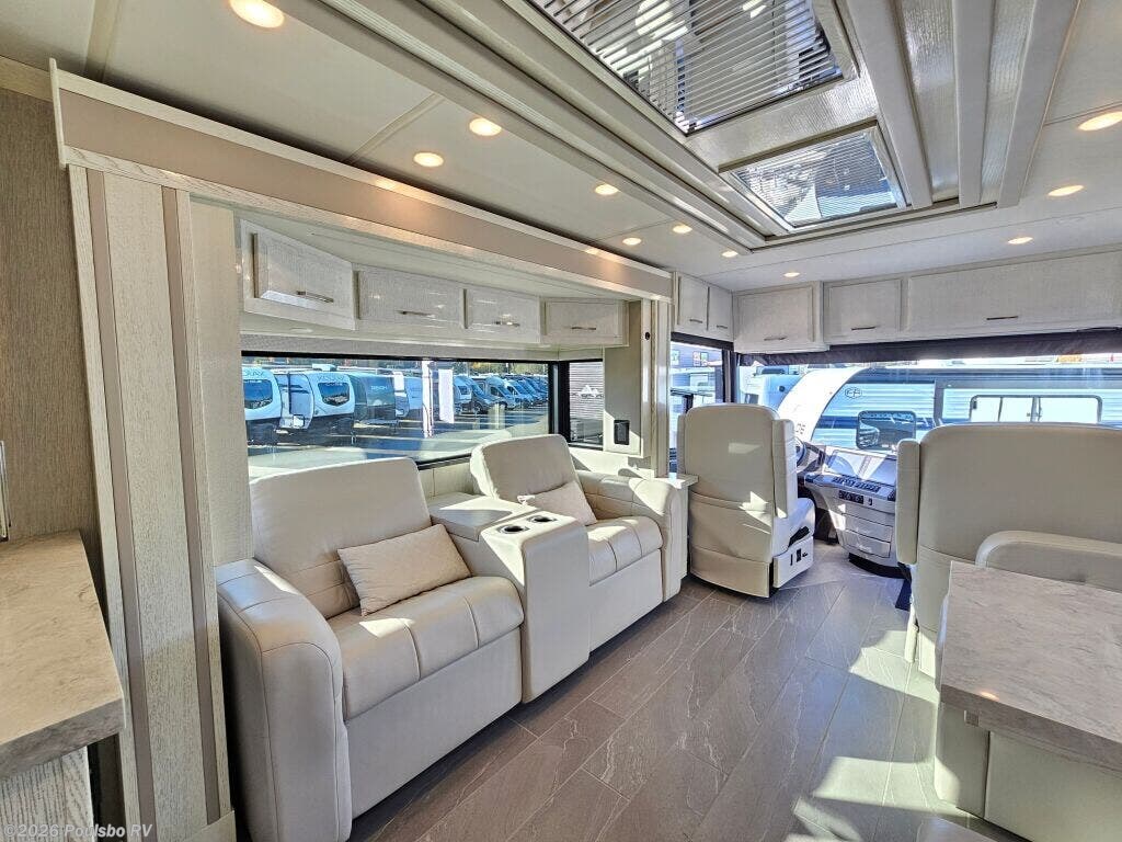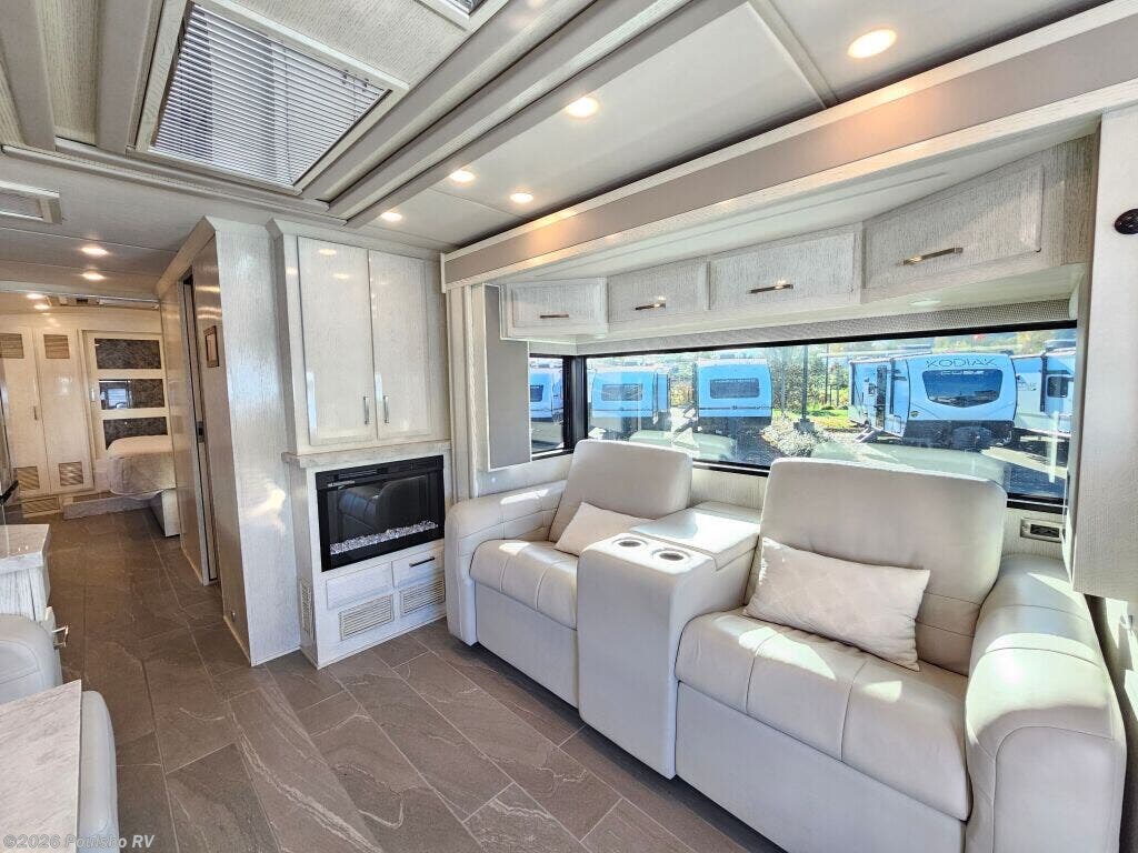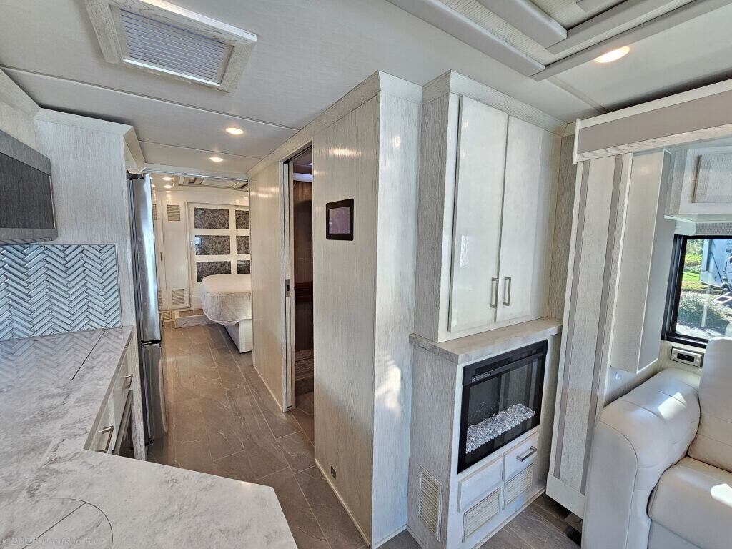 The 2023 Newmar New Aire 3543 is a used luxury diesel motorhome designed to elevate your RV experience with 35.76 feet of refined living space. Ideal for families or groups seeking comfort on the road, it accommodates up to six people with flexible sleeping arrangements that ensure a restful night for everyone. This model features three slide outs, significantly expanding the interior to create a spacious atmosphere perfect for relaxing and entertaining. Step inside to discover a thoughtfully designed living area that blends comfort and convenience, allowing you to unwind after a day of travel. The single awning provides ample shade and outdoor living options, enhancing your connection with the great outdoors. Practical additions like leveling jacks contribute to a stable setup wherever you park, while the powerful diesel engine combines efficiency and strength with a towing capacity of 10,000 pounds for added versatility. The New Aire 3543 from Newmar is built to support your adventures with reliable performance, a spacious interior, and distinctive features tailored to modern RVers. As a family-owned, award-winning local RV dealer with multiple locations in Sumner, Everett, Kent, and Mt. Vernon Washington, Poulsbo RV here to help you find the perfect RV. Stock#: CCP5326, VIN: 4VZAT1D16PC093408.