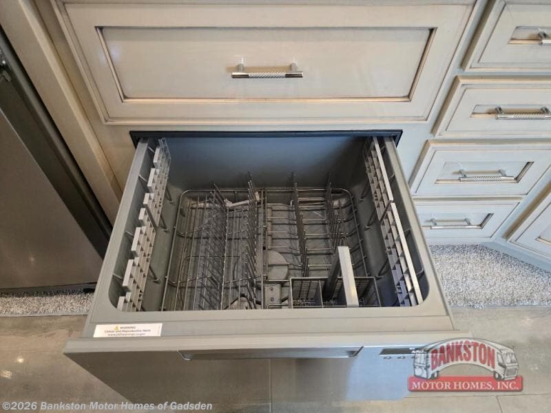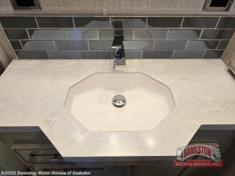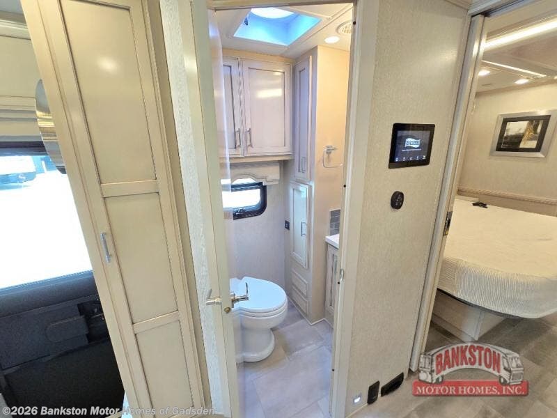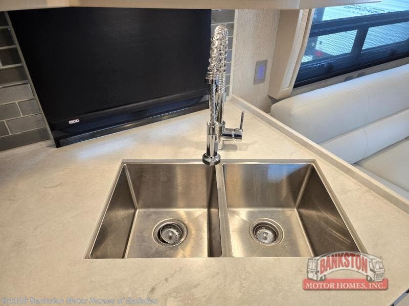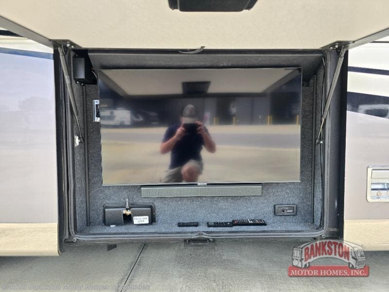 Start dreaming up your favorite getaway locations because this Super Star Super C diesel motorhome is ready to take you there! Not only will you look forward to arriving at your destination, but you'll also look forward to using all of the excellent amenities found on this coach. There is great convenience with a full and half bathroom, and the kitchen is also quite accommodating with its stainless steel convection microwave, flush-mount induction cooktop, countertop extension, and Whirlpool 19.7-cubic foot refrigerator. You'll have an amazing time gathering with friends on the hide-a-bed sofa or booth dinette, and the swivel cab seats will add some extra lounge space. If you've grown tired of talking and just want to watch a movie, use one of the two Samsung LED 4K TVs.