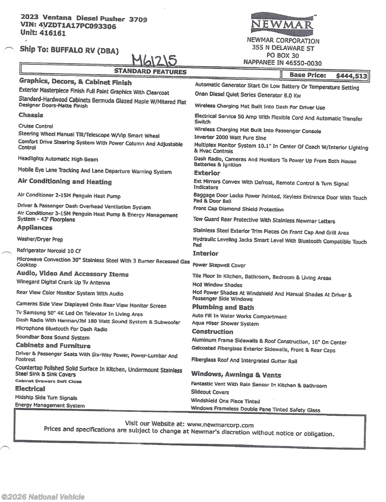 Request More Info on this 2023 Newmar Ventana 3709 Offered for sale by National Vehicle