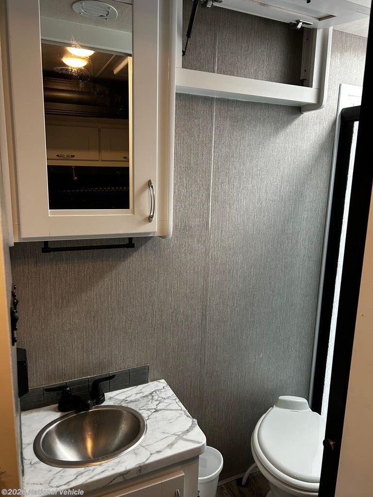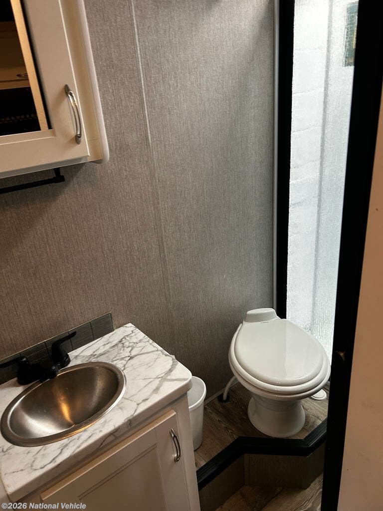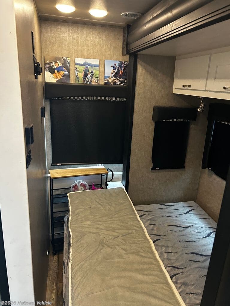 The rear master bedroom offers a cozy queen bed with ample storage, while additional sleeping areas accommodate up to six people?making it ideal for families or guests. A full bathroom with a separate shower provides residential convenience on the road.