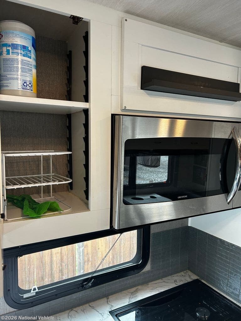 At just under 30 feet in length, the 28S strikes the perfect balance between maneuverability and spacious living. A large slide-out opens up the main living area, featuring a comfortable sofa, dinette, and a fully equipped kitchen with a three-burner cooktop, microwave, and residential-style refrigerator. Thoughtful design and high-quality materials create a refined interior that feels like home wherever you travel. ()
