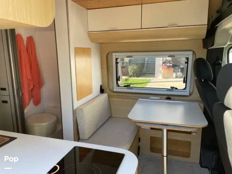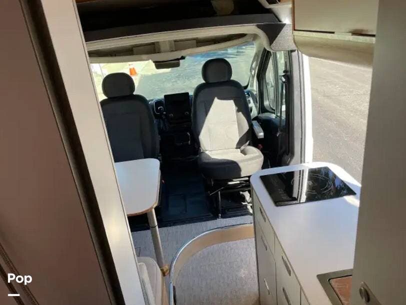 Step inside and you'll immediately notice the clean, modern design and smart use of space. The rear lounge easily converts into a comfortable sleeping area, while the swivel front seats expand the living space for relaxing, dining, or working on the road.