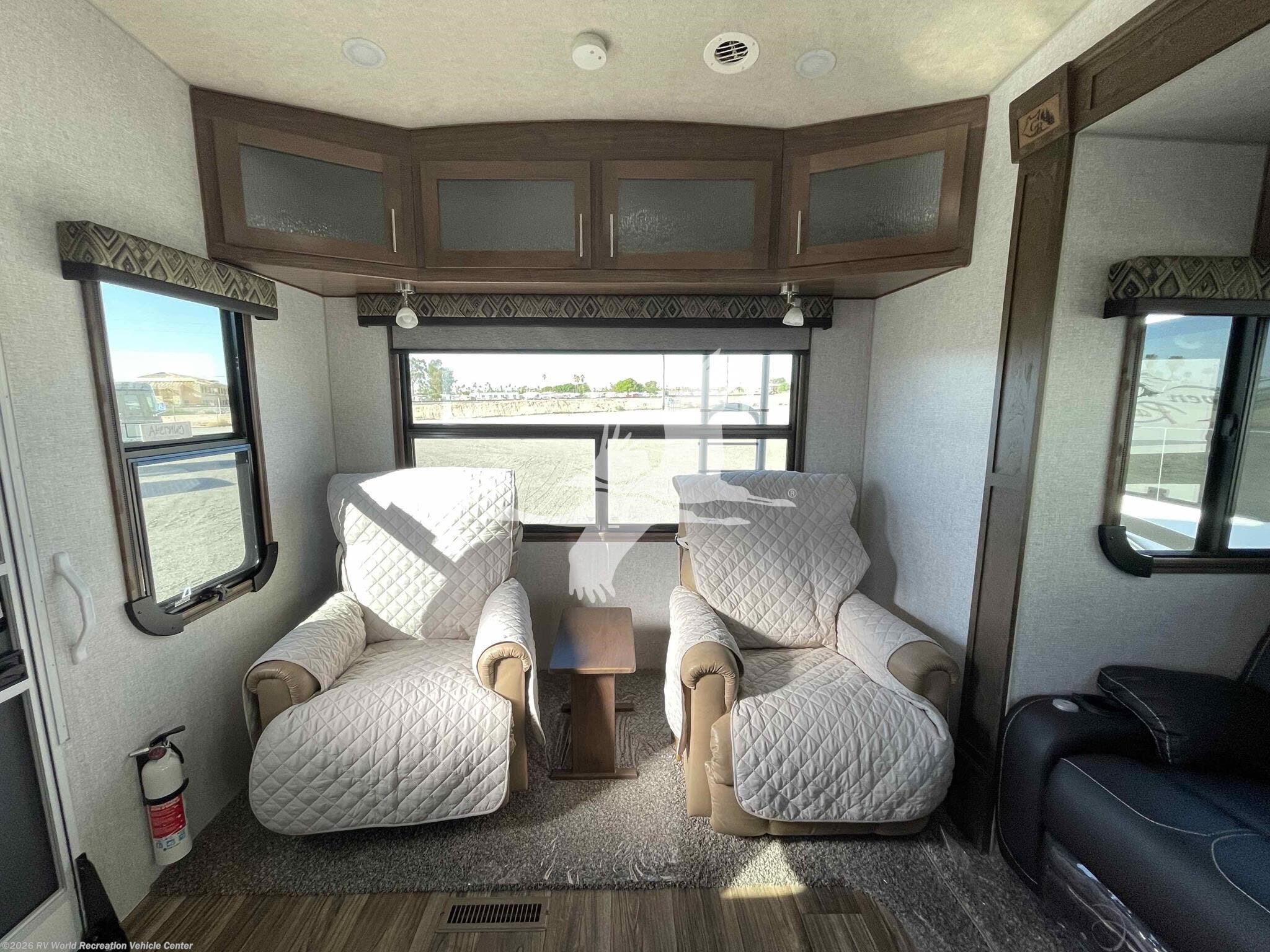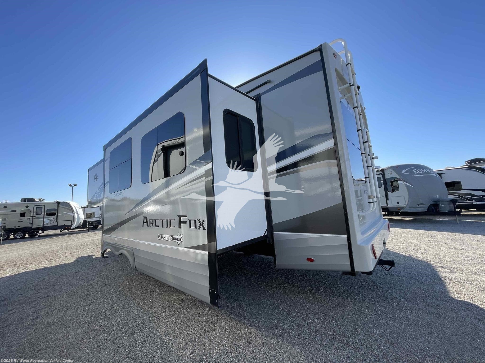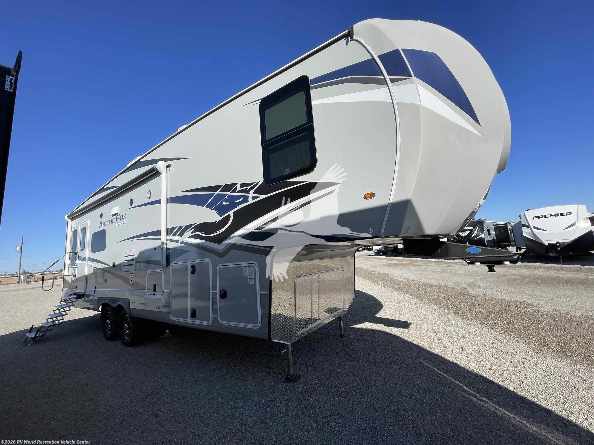 ****STK#: CW18734A.**** VERY SLIGHTLY USED - MAKE OFFER! Beyond its features, Arctic Fox has built its reputation on quality materials and solid construction methods. Because the Fox is so durable, satisfied owners are pleased to discover how well the Arctic Fox maintains its resale value. From the basics to the frills built into the Arctic Fox, you will see the pride of workmanship reflected in the finished unit. This 2023 Arctic Fox 29-5T is a perfect example of this business philosophy. The 29-5T is a "4-Season", double slide-out, traditional rear living model. Just like home, the forced air ducted heating and cooling systems in your Arctic Fox provide fast winter warm-up and quick summer cool down. The heating system also circulates warm air to our fully enclosed & insulated holding tanks. That fact makes the Arctic Fox a big seller in cold northern climates. All Foxes come standard with R-18 insulation in the roof and R-7 insulation in the walls. Thermal pane windows are also available and all Foxes come standard with 80/20 tinted windows. These windows keep you cool, provide privacy, and protect your furnishings from harmful UV rays. All this insulation also makes Arctic Fox the perfect choice for hot southern climates. Other features on this 34' 7" 5th wheel include a big 15k BTU roof AC, FLXGuard power patio awning, 4 point leveling system, Corian counter tops, LED "Smart" TV, roof access ladder, 45 watt solar panel, alloy wheels, and more. Options on this Arctic Fox 5th wheel trailer when it was new included... * FLXGUARD MAIN AWNING * 15K AIR CONDITIONER W/DUCTING * FIREPLACE * CROSS-STITCH SOFA 68"