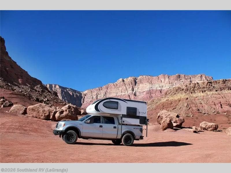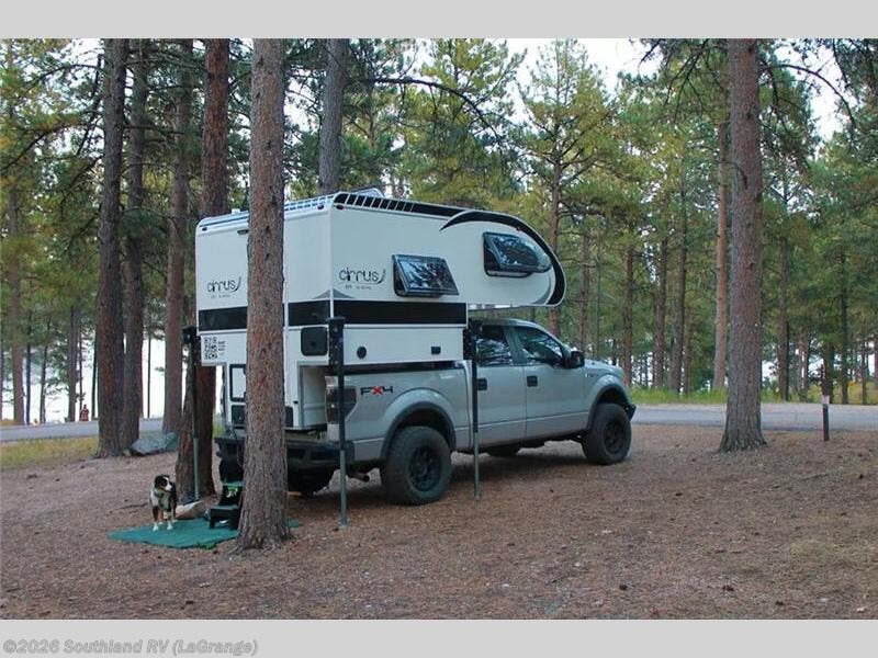 This Cirrus truck camper comes with a Froli sleep system which is a unique and innovative approach to a comfortable night of sleep. While you're sleeping on the bed, you can look through the stargazer window to appreciate the night sky. The dinette can easily be transformed into a second bed, and the sink, two-burner stove, and refrigerator give you a place to prepare meals. This model also comes with an external LP hook-up, a Nautilus Water Management System, an exterior shower, and a dual battery compartment.