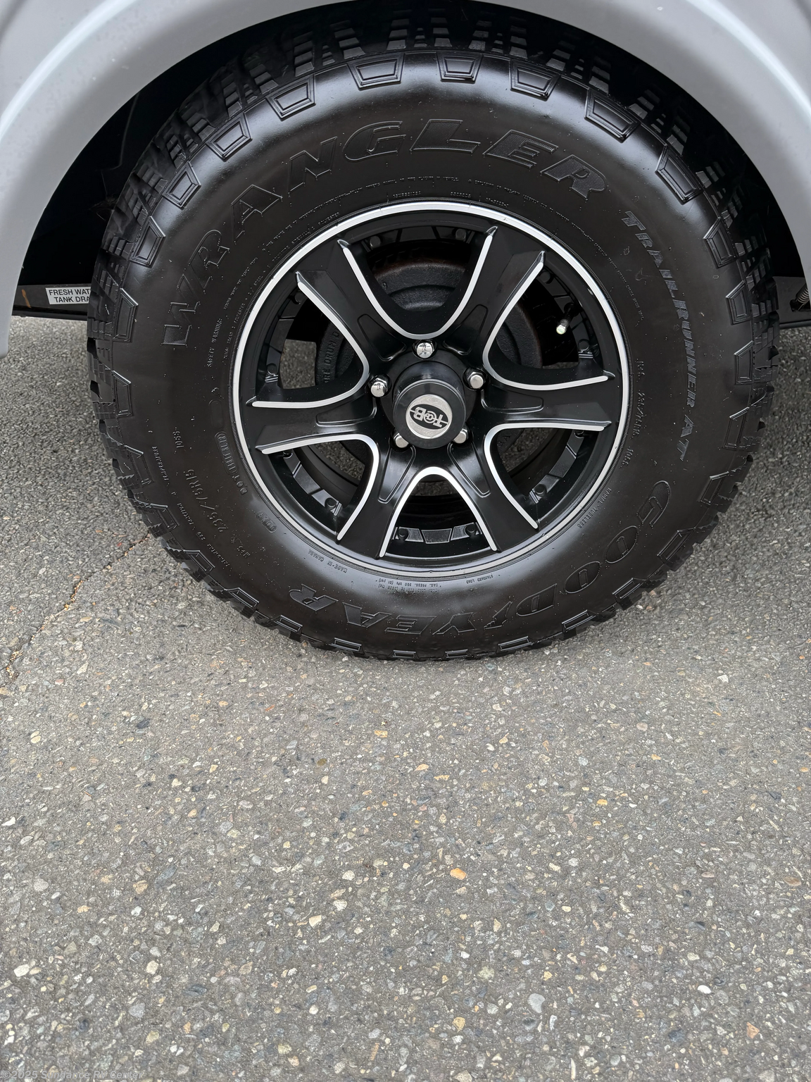 External Shower, Leveling Jacks, Outside Entertainment Center, Power Roof Vent, Spare Tire Kit -