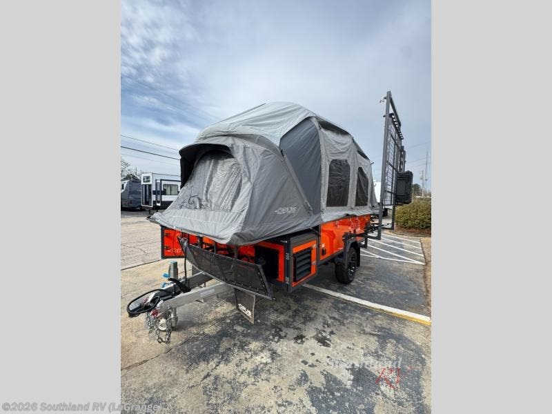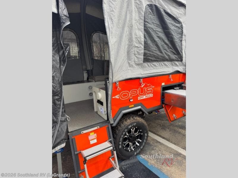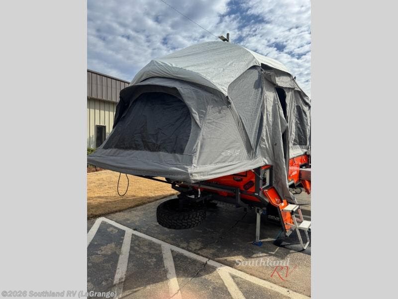The Opus Camper OPUS folding pop-up camper is created for adventure! An all-terrain chassis, off-road tires, and independent coil suspension allow you to go wherever you want to go. The compact design makes it easy to take the OPUS down back roads and beaten paths, but once you settle on a destination, the OPUS opens up into an accommodating base camp for you and your fellow travelers. As you travel, you'll find that the extra storage components will be extremely useful.