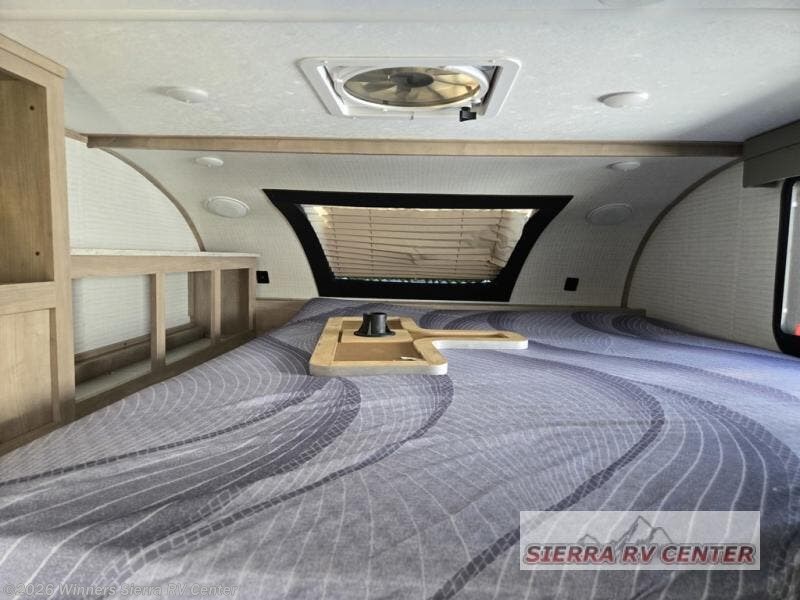 You will have everything you need for a comfortable trip in this hard side truck camper! There is a front queen bed to lay your head on at night with storage next to it and an entertainment center if you choose to add the optional TV. Above the two burner cooktop and double sink are overhead cabinets to store your cooking essentials. The 60" x 22" jackknife sofa is not only a comfortable place to enjoy your meals, but also for transforming into an extra sleeping space, plus it has overhead cabinets to store your games. You even have a wet bath to freshen up in each morning!