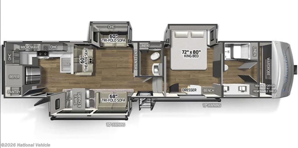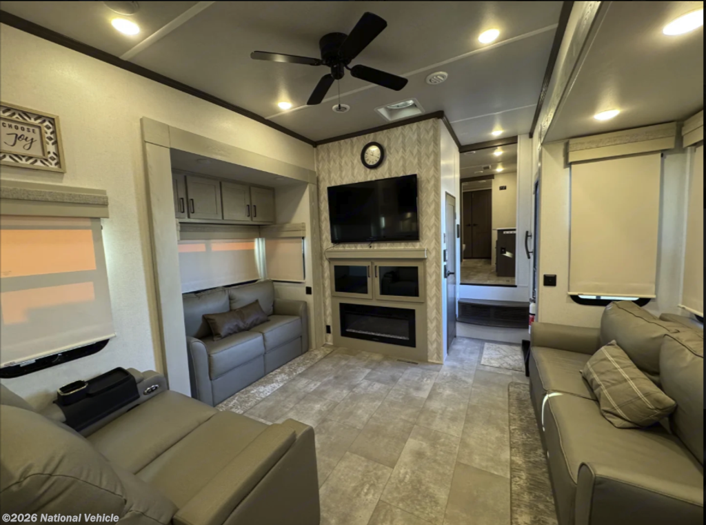 Now available: this stunning 2023 Columbus 384RK offers spacious residential-style living with all the comforts of home ? and then some. Designed for extended stays or full-time RVers, this luxury fifth wheel is loaded with high-end finishes and thoughtful upgrades, including a walk-in rear kitchen, split-bath floor plan, and bonus half-bath for added convenience.