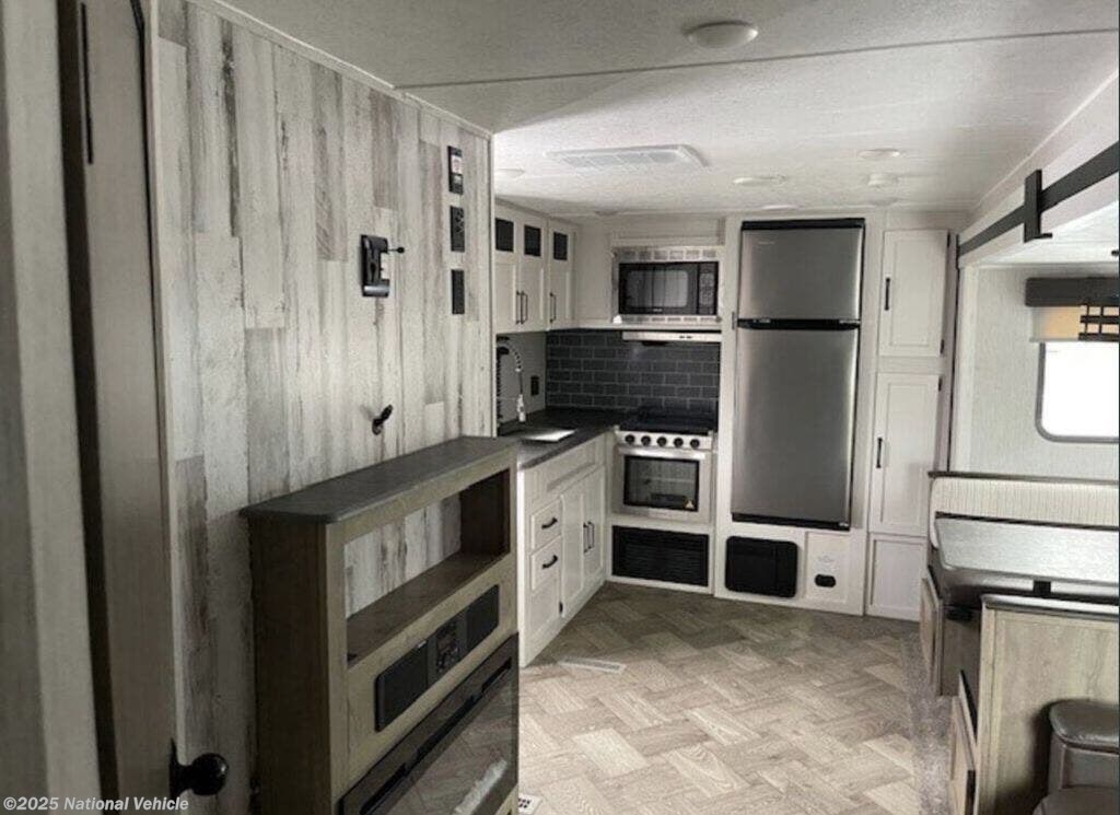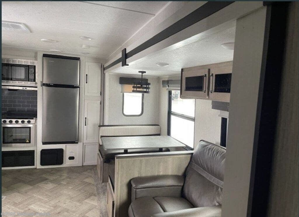 Experience comfort, style, and smart design with the 2023 Palomino Puma 25RKQB, a 29' 7" travel trailer crafted for couples and small families who want a roomy, residential feel in a tow-friendly package. With its popular rear kitchen layout, inviting living area, and private front bedroom, this Puma delivers everything you need for unforgettable getaways.