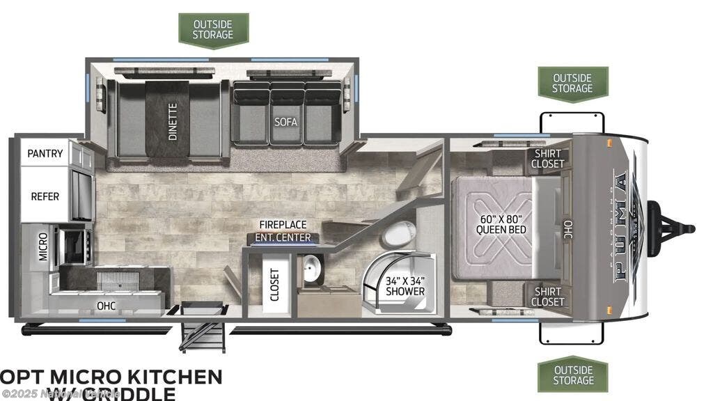 Outside, the Puma 25RKQB is equipped for adventure with a power awning with LED lighting, solid entry steps, pass-through storage, and durable construction designed for longevity. Whether you?re camping at your favorite state park or exploring new destinations, this model offers the perfect blend of convenience and comfort.